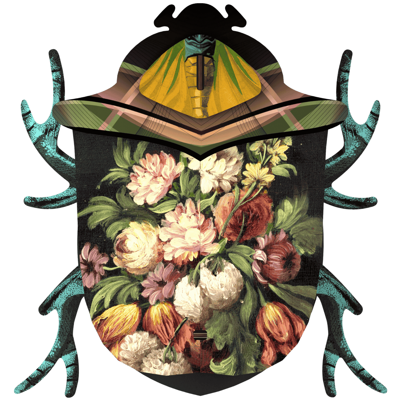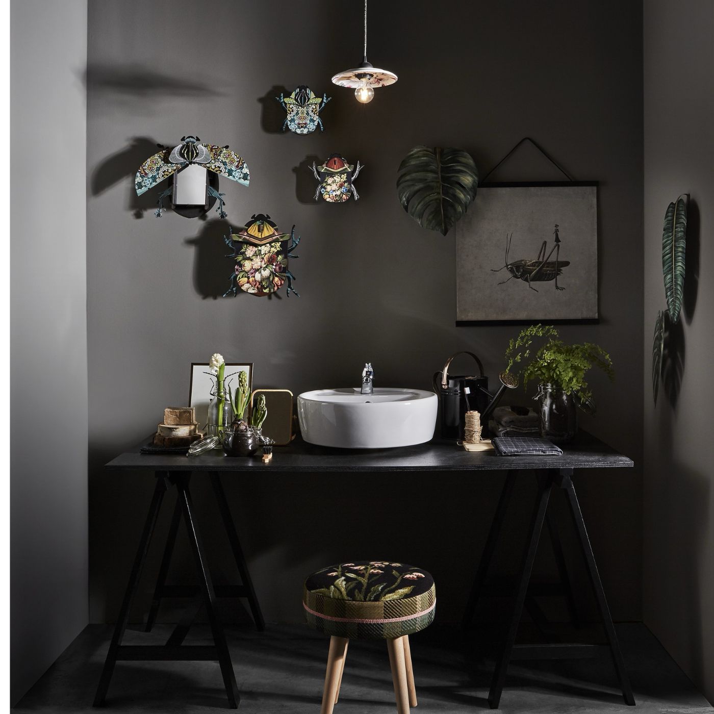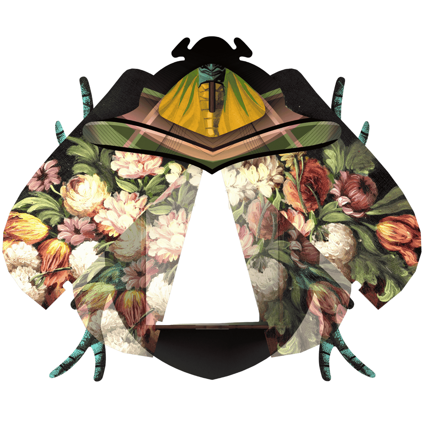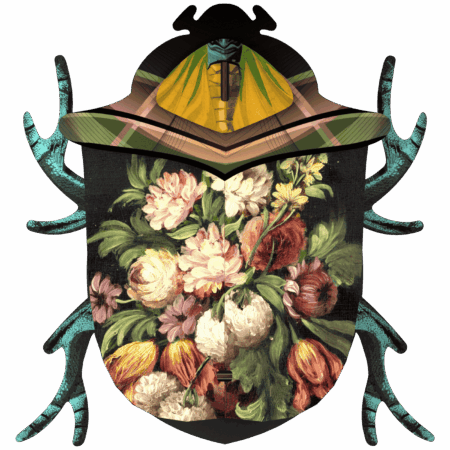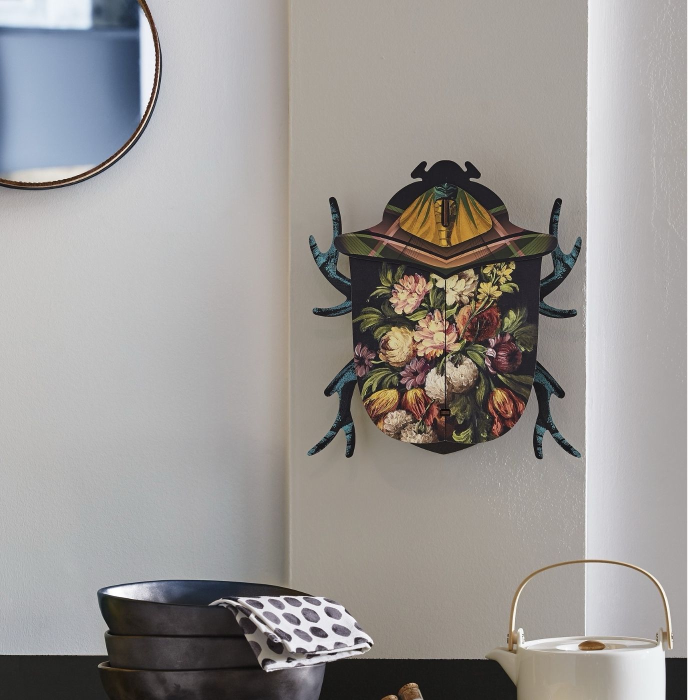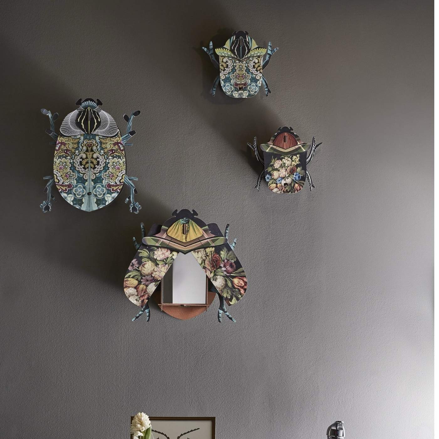 Insetto décor “Keith” con specchio. Un oggetto curioso che unisce estetica entomologica e funzione décor. In legno riciclato, finitura artistica.