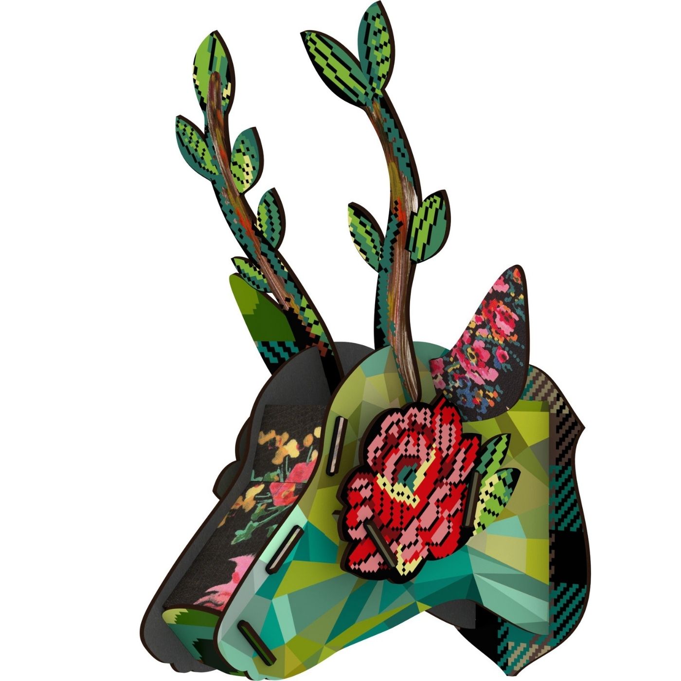Capriolo piccolo “Funhouse”, decorazione murale in cartone ecologico. Un oggetto unico che mixa ironia e sostenibilità. Perfetto per dare un tocco pop a camerette, studi creativi o ingressi.