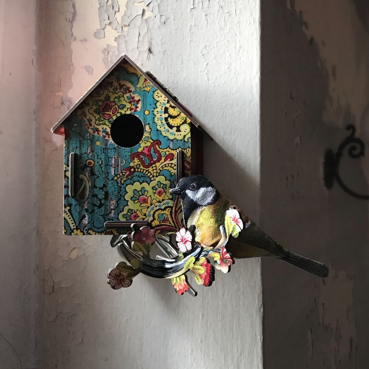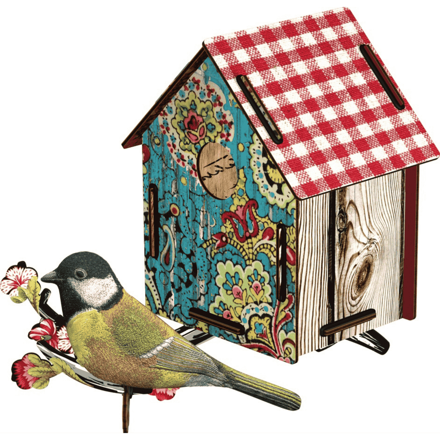 Casetta decorativa “Serenade” con uccellino in stoffa. Romantica e artigianale, in legno riciclato con finiture ecologiche. Ideale da appendere o appoggiare. Confezionato steso per facilitare lo stoccaggio e la spedizione, rispettoso dell’ambiente (legno riciclato, vernici non tossiche). Made in Europe.