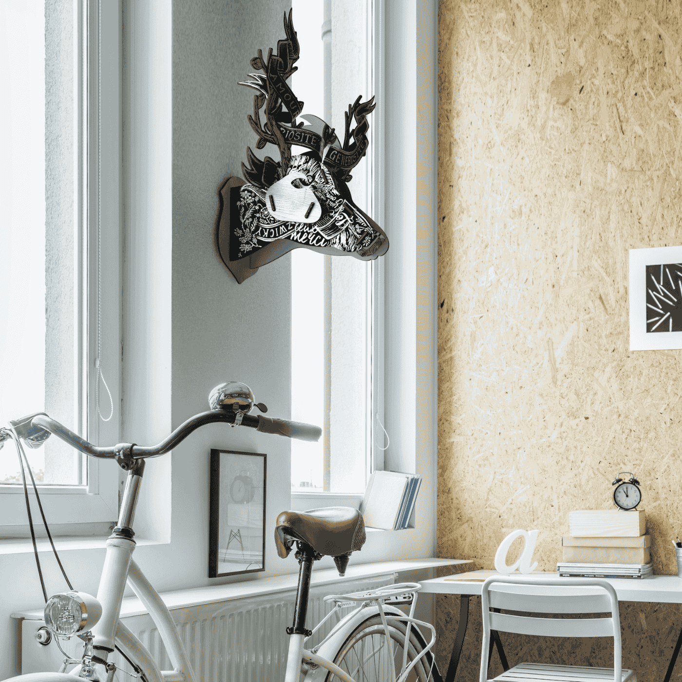 Cervo medio da parete “Zwickypedia”, realizzato in cartone ecologico. Facile da appendere, arreda con ironia e stile eco-friendly. Perfetto per chi ama pezzi dal design consapevole.