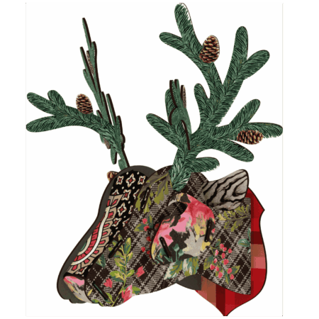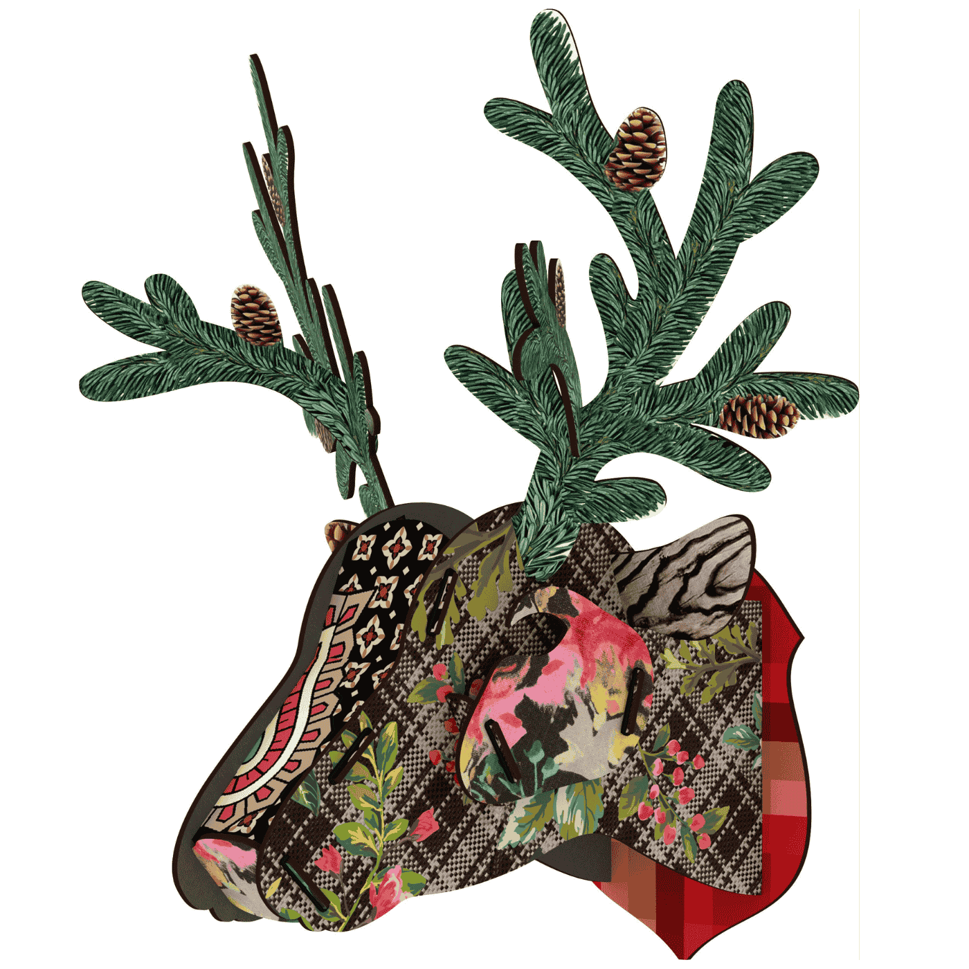 Cervo medio “In the Pines”, realizzato in cartone riciclato. Una decorazione eco-pop da parete per ambienti ironici, kids-friendly o creativi. Montaggio facile, grande effetto visivo.