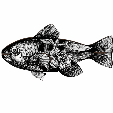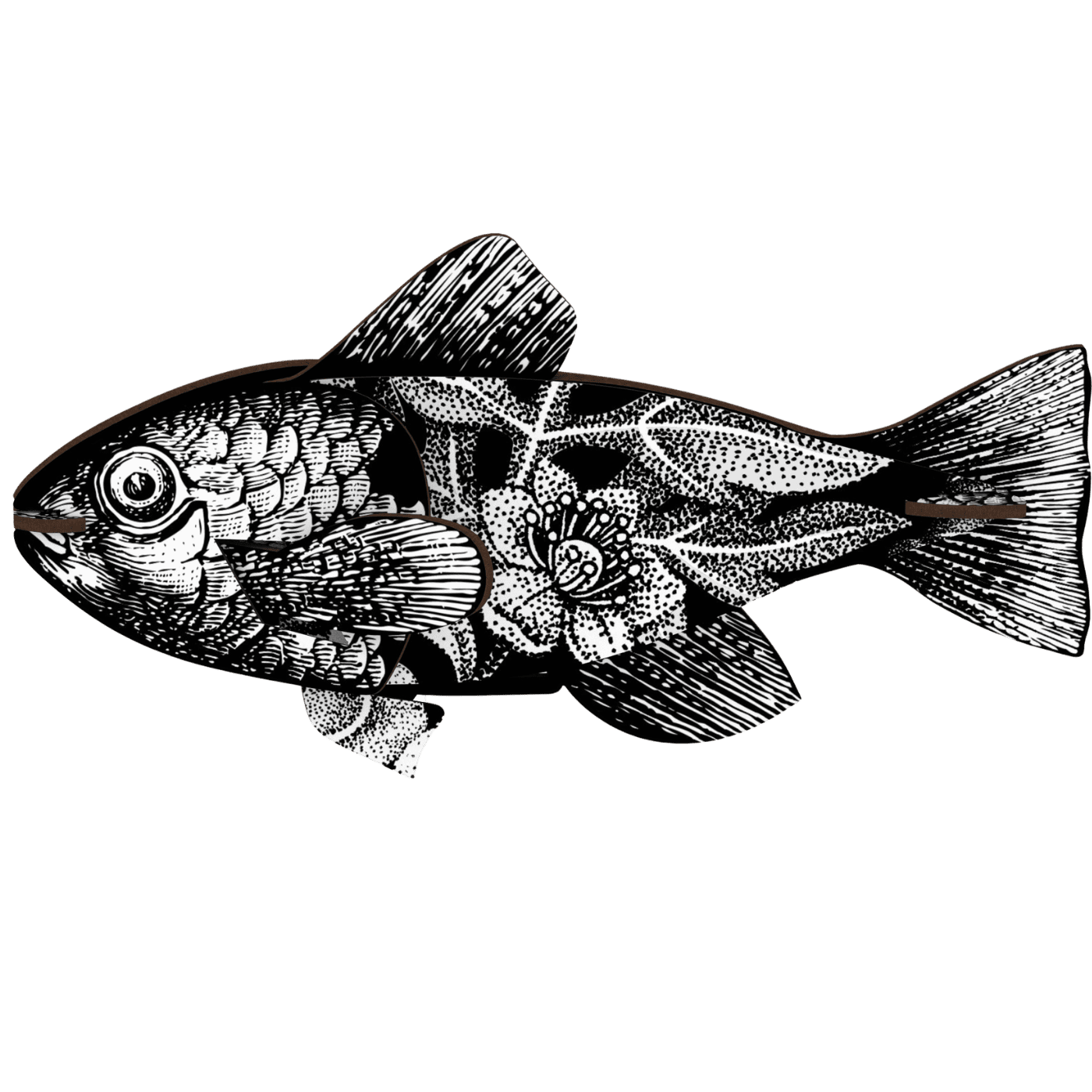 Pesce décor “Vertigo” misura small. Design d’impatto che richiama l’arte contemporanea. Realizzato in materiali ecologici. Ideale per spazi audaci e colorati.