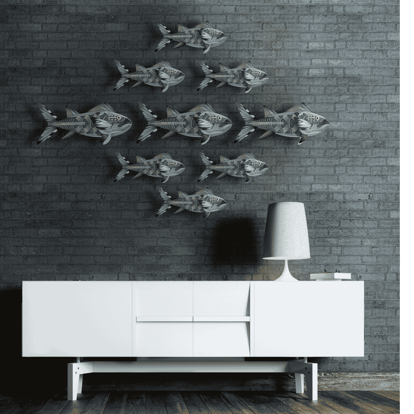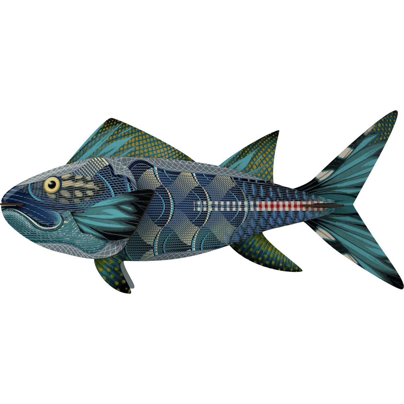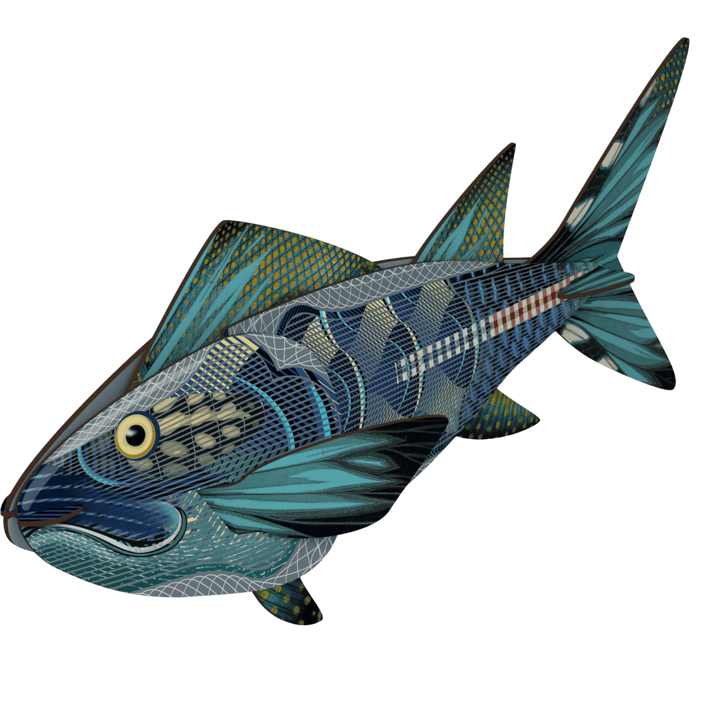 Pesce décor “The Big Kahuna” in versione XL. Un pezzo statement per arredamenti eclettici. Realizzato in legno riciclato. Facile da montare a parete.