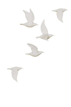 Set di 5 colombe in volo in porcellana bianca opaca da parete. Un’installazione elegante e armoniosa per arredare con leggerezza e raffinatezza pareti di casa o studio. Effetto dinamico assicurato.