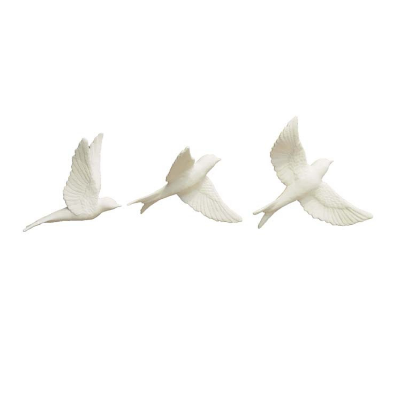 Set di 3 rondinelle da parete in porcellana bianca opaca. Una composizione elegante e leggera che simula il volo degli uccelli, perfetta per ambienti raffinati e pareti dallo stile nordico o romantico.