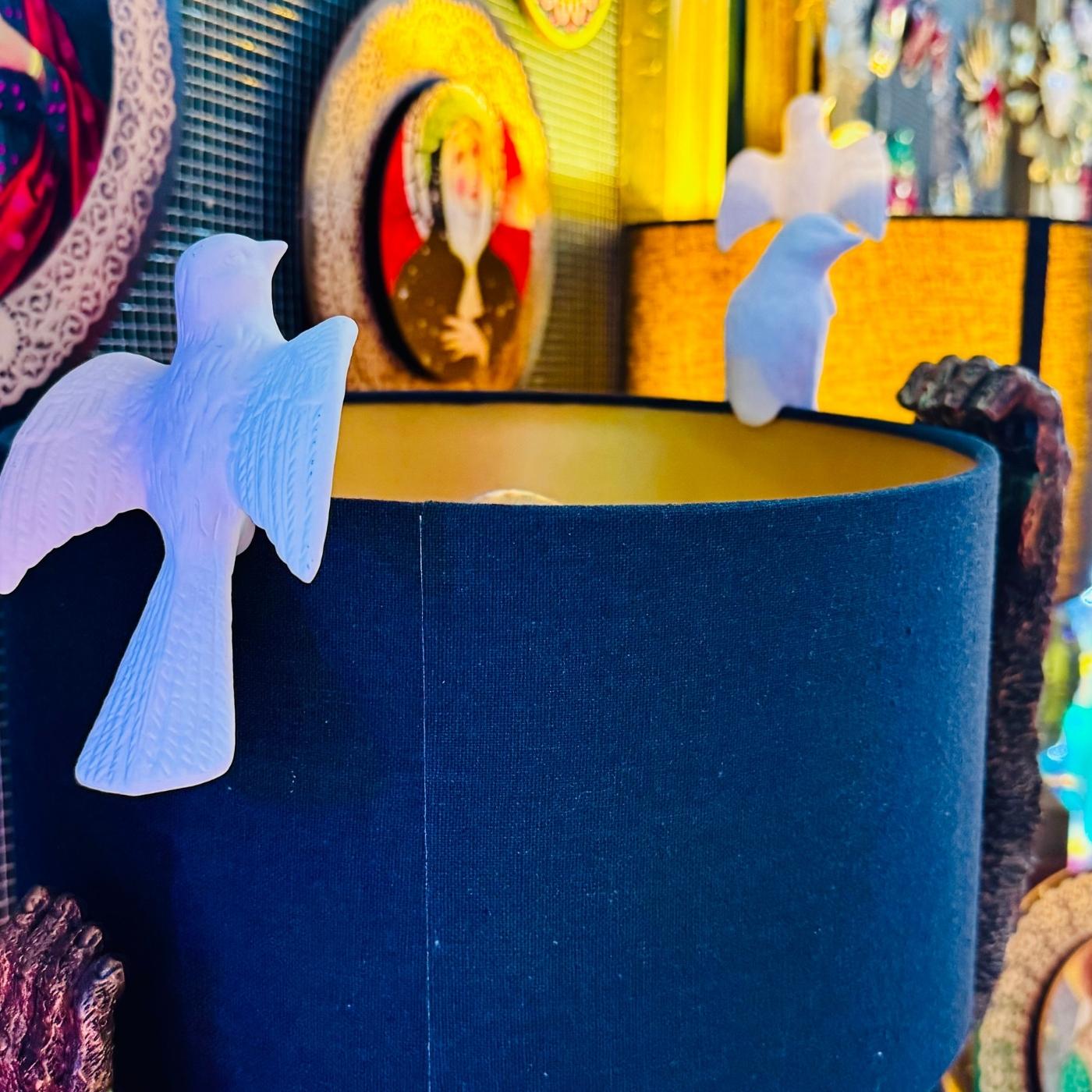 Colombina da bordo in porcellana bianca opaca, perfetta da posare su bordi o paralumi. Un elemento poetico e discreto, capace di donare leggerezza e movimento a qualsiasi ambiente.