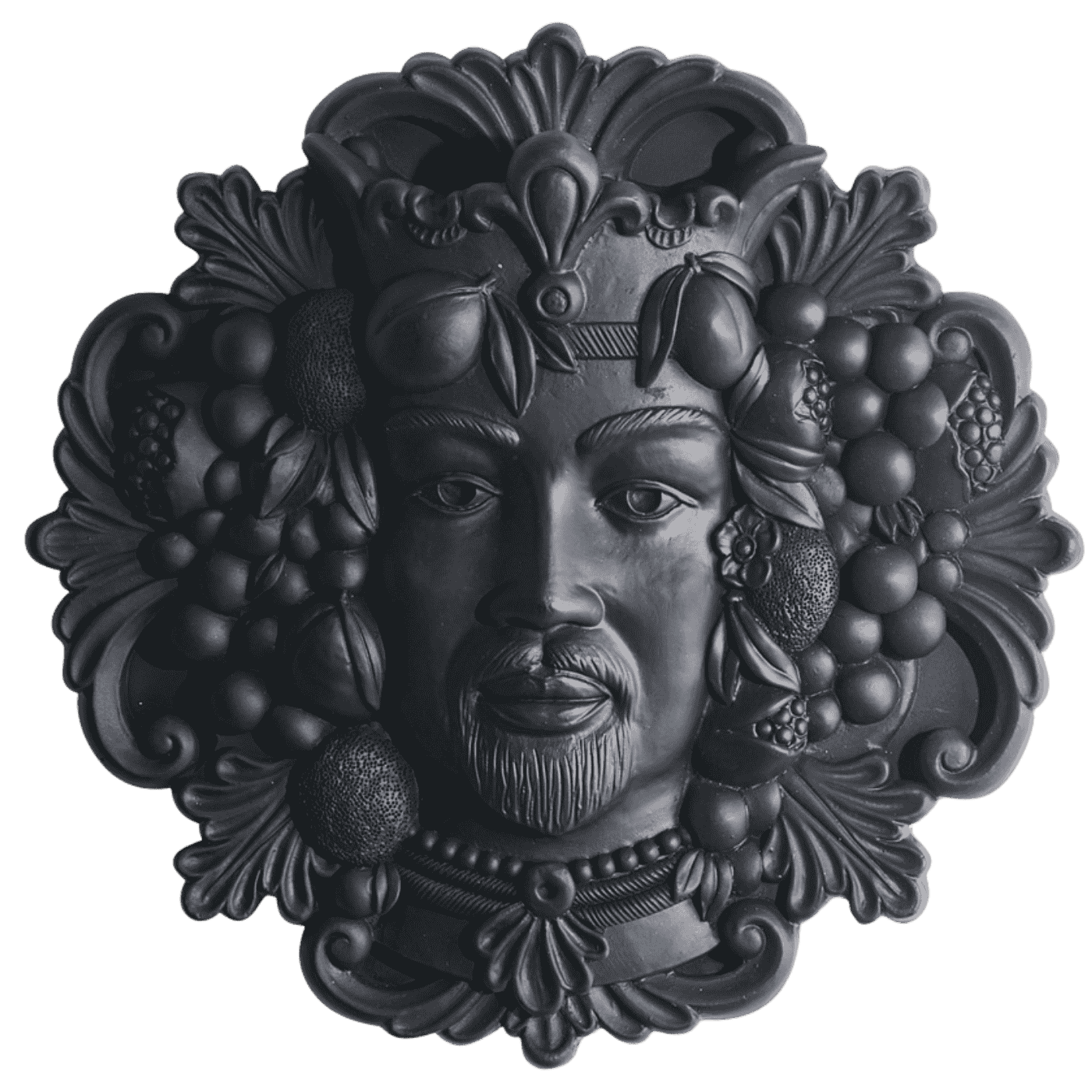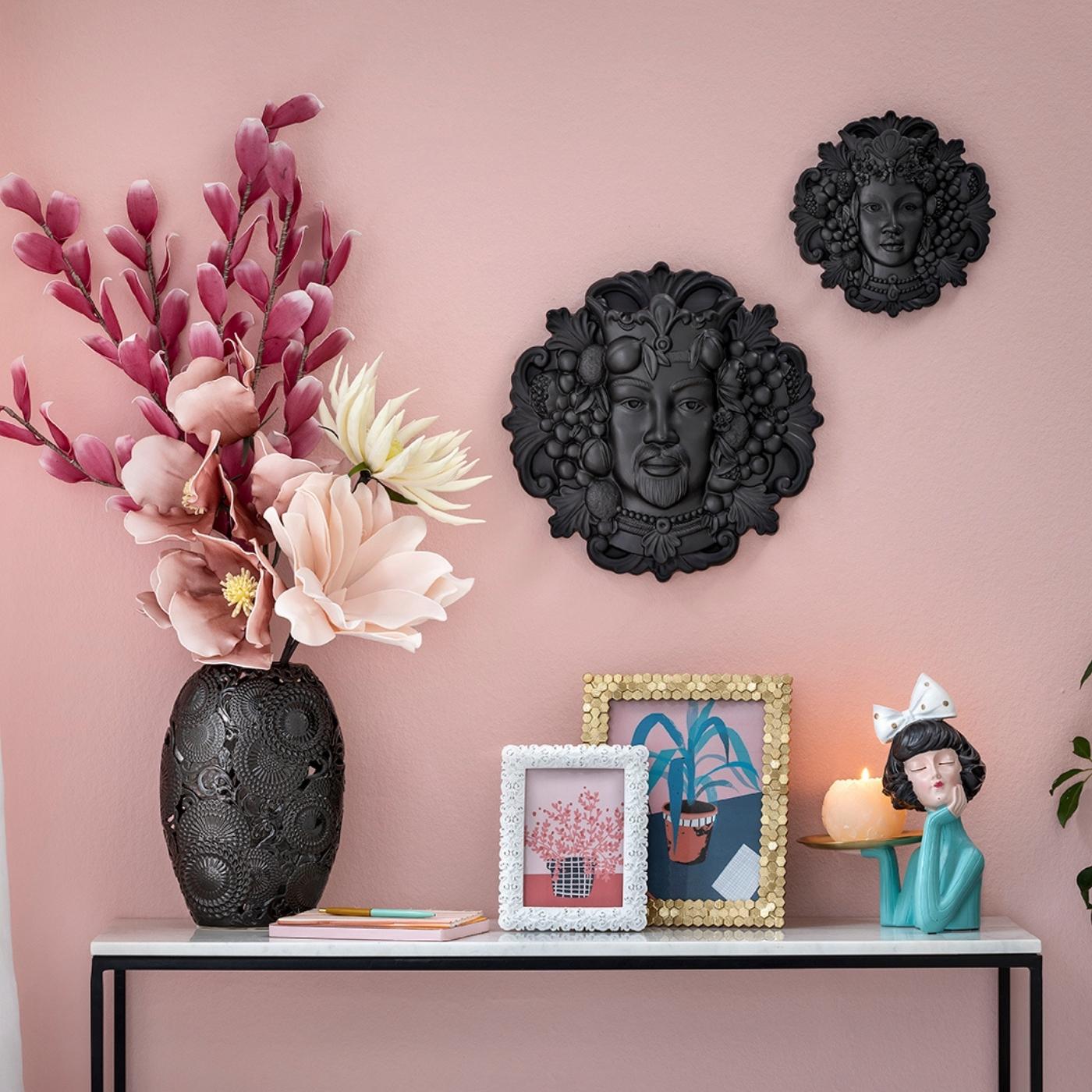 Re testa di moro nero in resina, finitura opaca, formato 40 cm. Perfetto per creare un contrasto sofisticato sulle pareti. Simbolo di forza e radici culturali reinterpretate in chiave design.