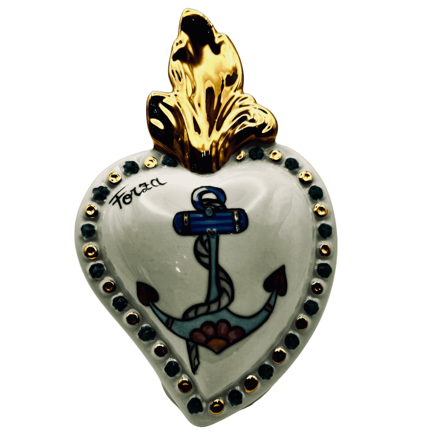 Cuore in porcellana profumatore dipinto a mano ‘Forza’.
