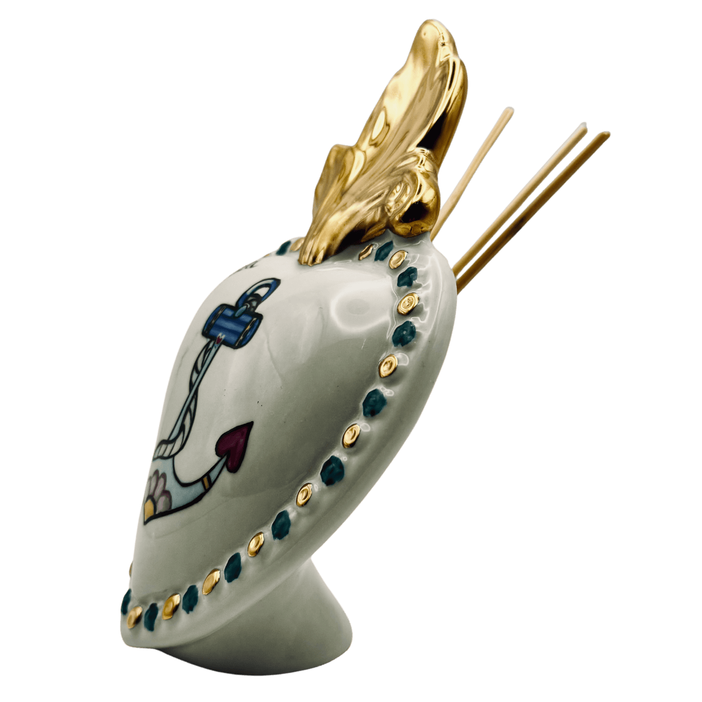 Cuore in porcellana di Capodimonte dipinto a mano, utilizzabile anche come elegante profumatore. Un pezzo artigianale unico, che unisce bellezza e funzionalità. Perfetto come decorazione d’ambiente o idea regalo simbolica e profumata.