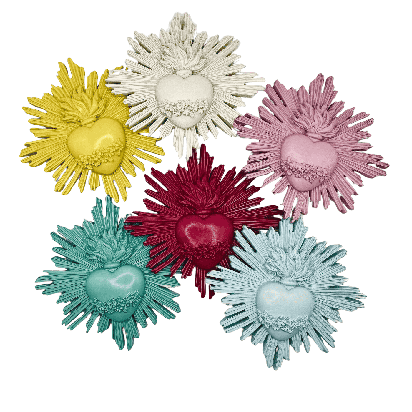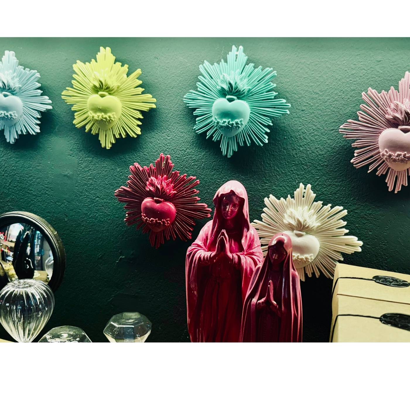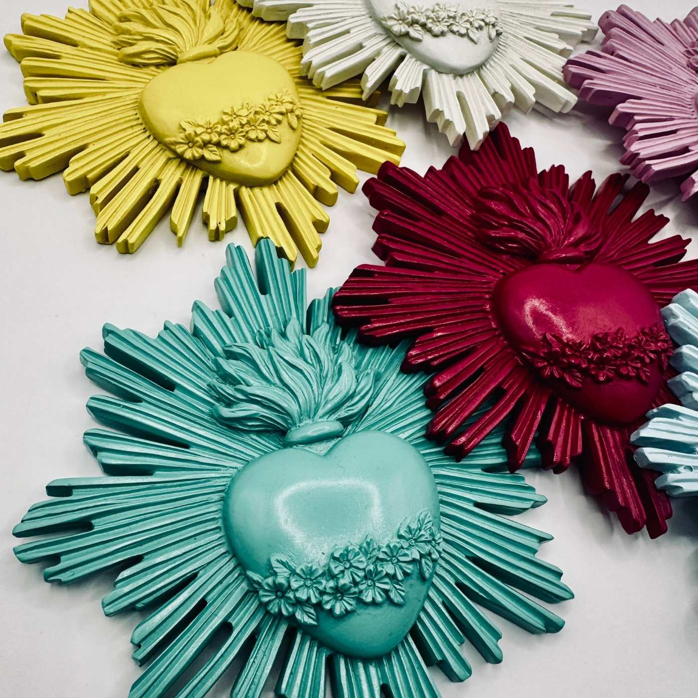 Ex-voto da parete in resina ROSA con raggi. Simbolico e audace, dona energia e luce a ogni stanza. Perfetto per chi ama decorazioni dal significato profondo e dallo stile vibrante.