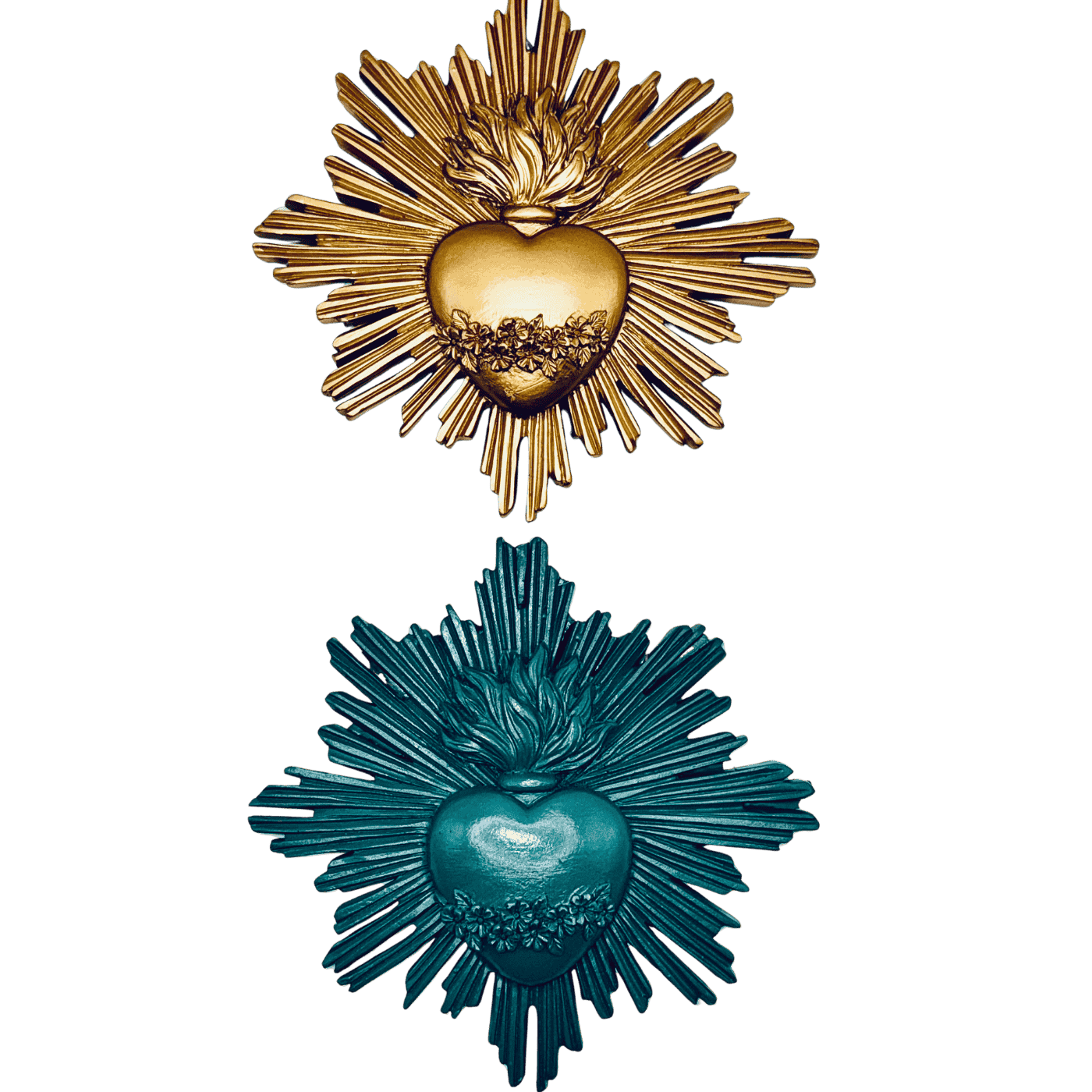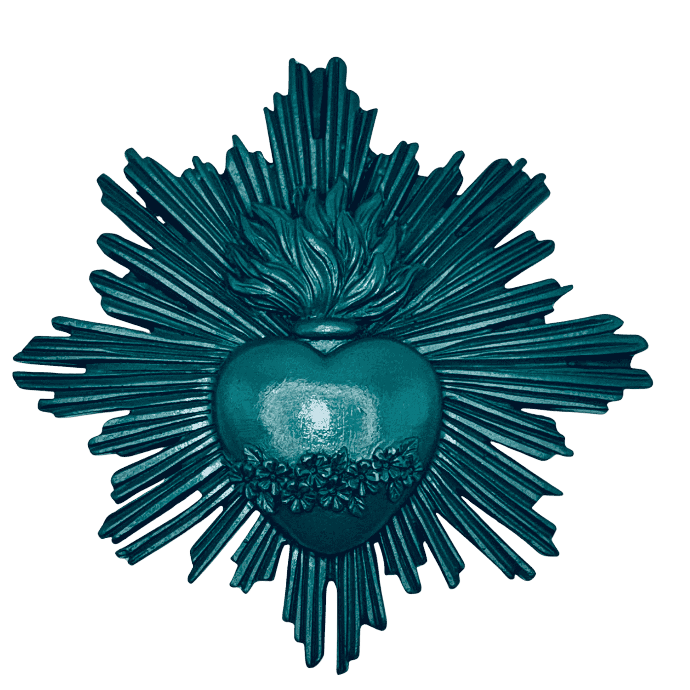 Ex-voto decorativo da parete in resina VERDONE, con raggi stilizzati. Ideale per ambienti luminosi e raffinati, trasmette un messaggio di protezione e spiritualità. Aggiunge un tocco artistico a qualsiasi spazio.