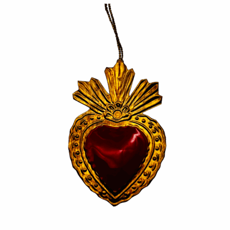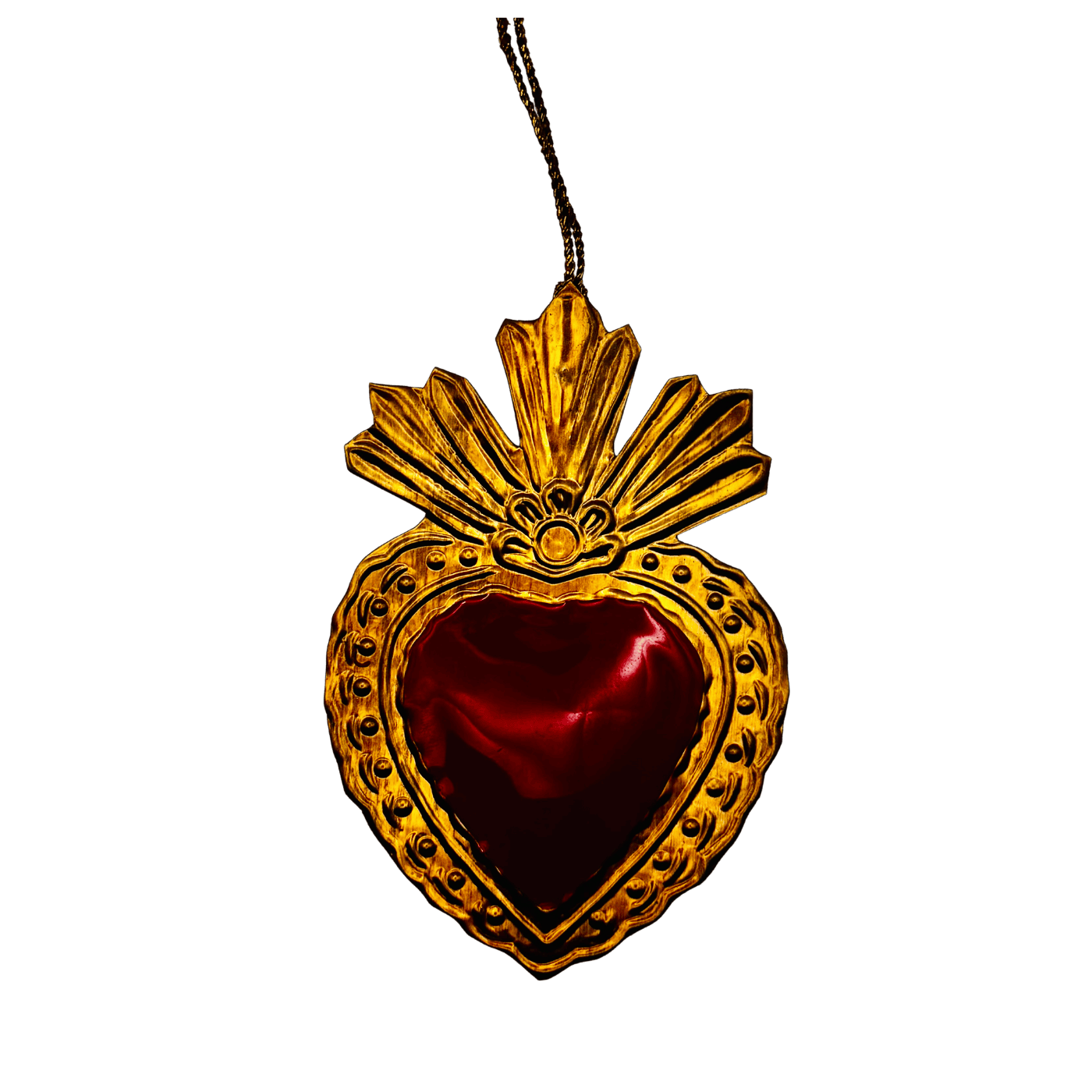 Ex-voto dorato con cuore smaltato rosso. Una combinazione vibrante di passione e simbolismo, per pareti evocative e di carattere.