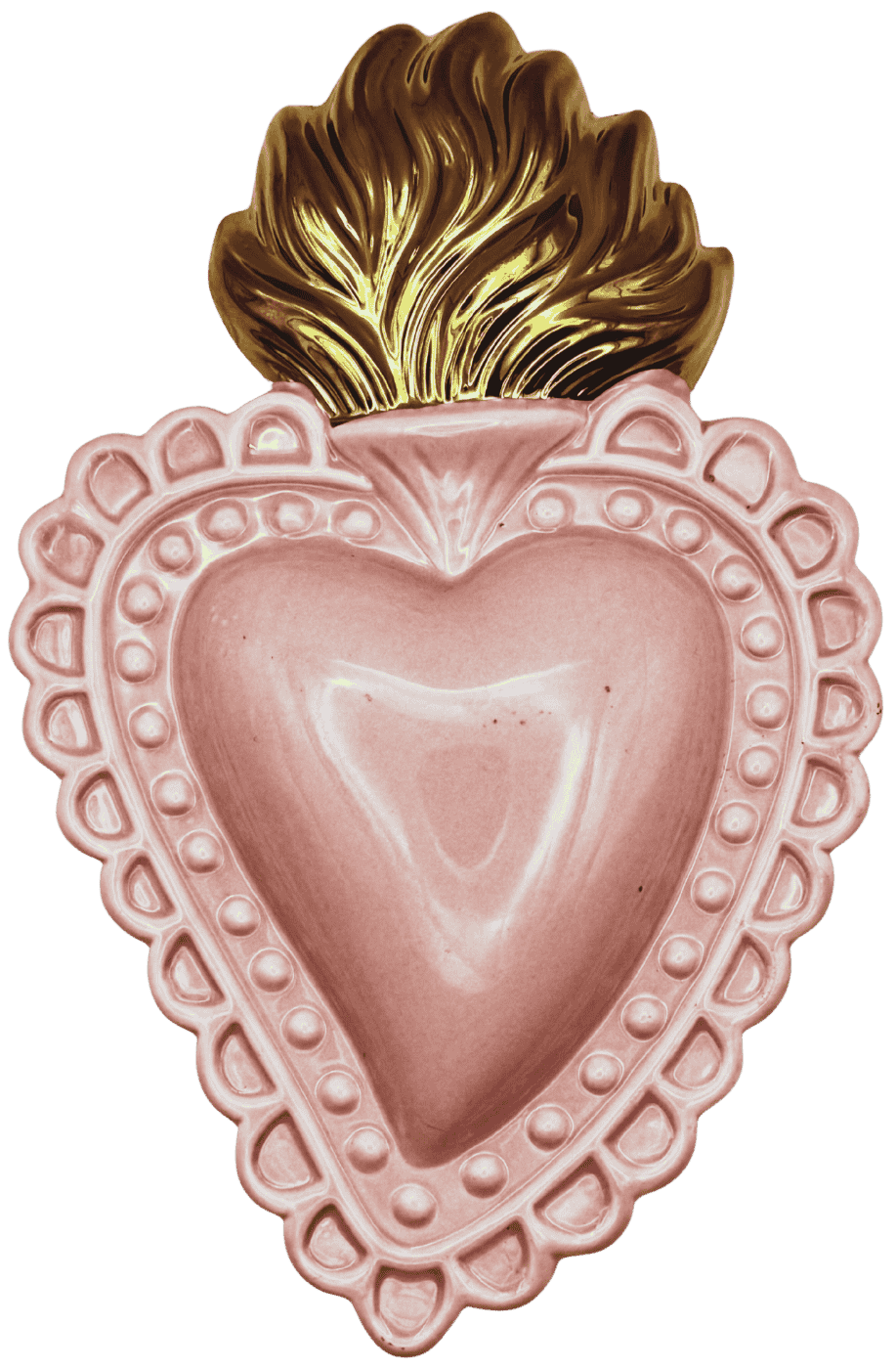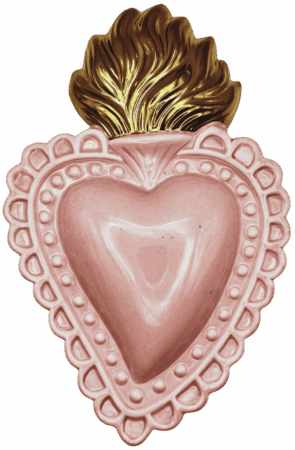 Grande cuore ex-voto decorativo rosa cipria in porcellana dipinta a mano. Scultura elegante e romantica che unisce spiritualità e design contemporaneo. Ideale per arredare pareti, mensole o come regalo prezioso.