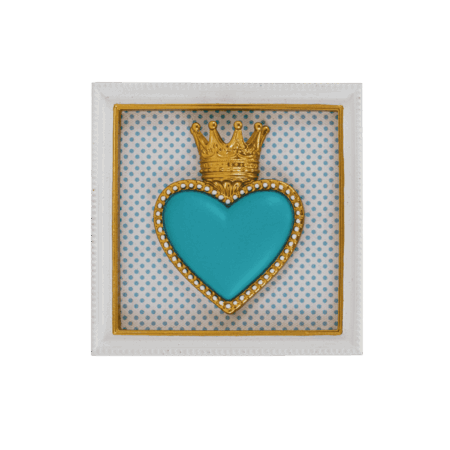 Quadretto piccolo con cuore azzurro. Oggetto decorativo da parete in resina dipinta a mano, perfetto per chi cerca un complemento simbolico e colorato per spazi raccolti o pareti creative.