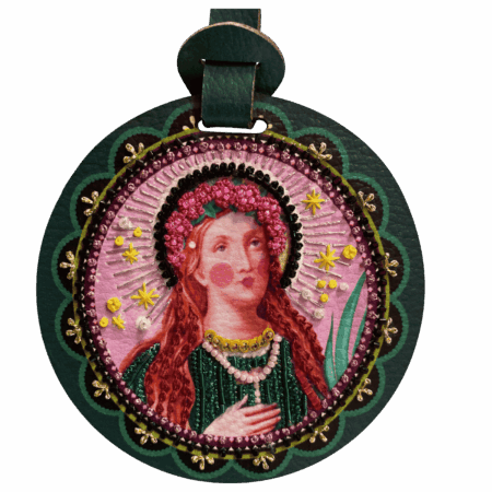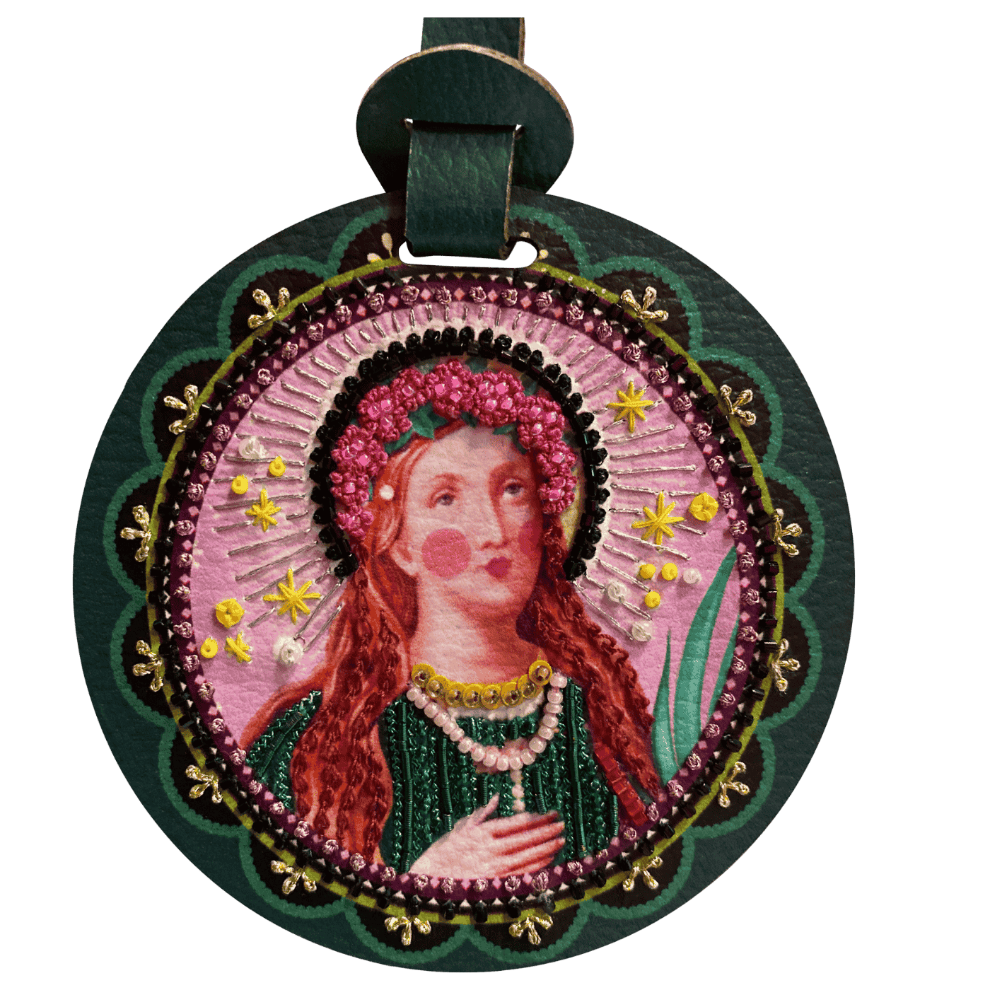 Invocata dagli studenti che devono sostenere un esame. Protettrice dei bambini e dei giovani. Decora la tua borsa con questo ciondolo finemente ricamato a mano. Adatto a ogni tipo di borsa, include una elegante scatolina regalo. Made in Europe. Un portafortuna spirituale moderno da avere sempre con sé. Perfetto per accompagnare chi studia, chi cresce, chi sogna.