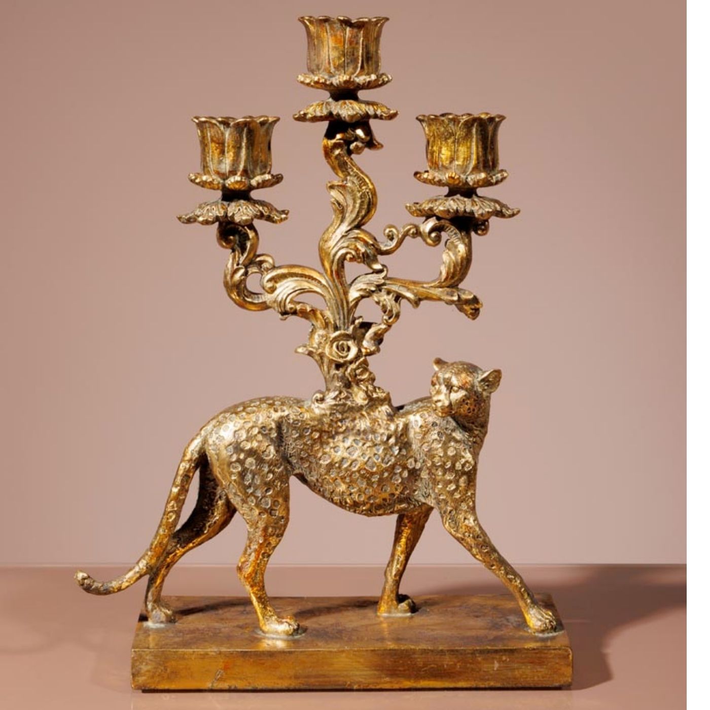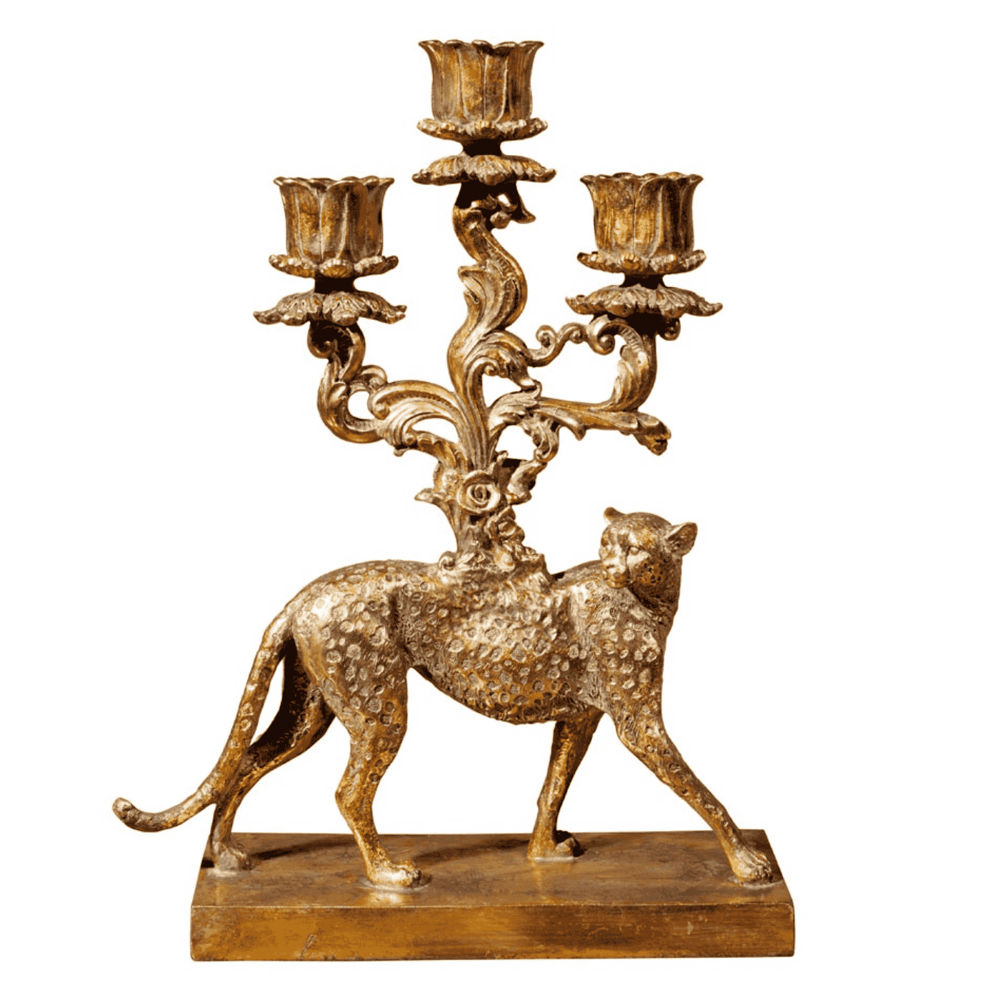 Candelabro dorato ghepardo.