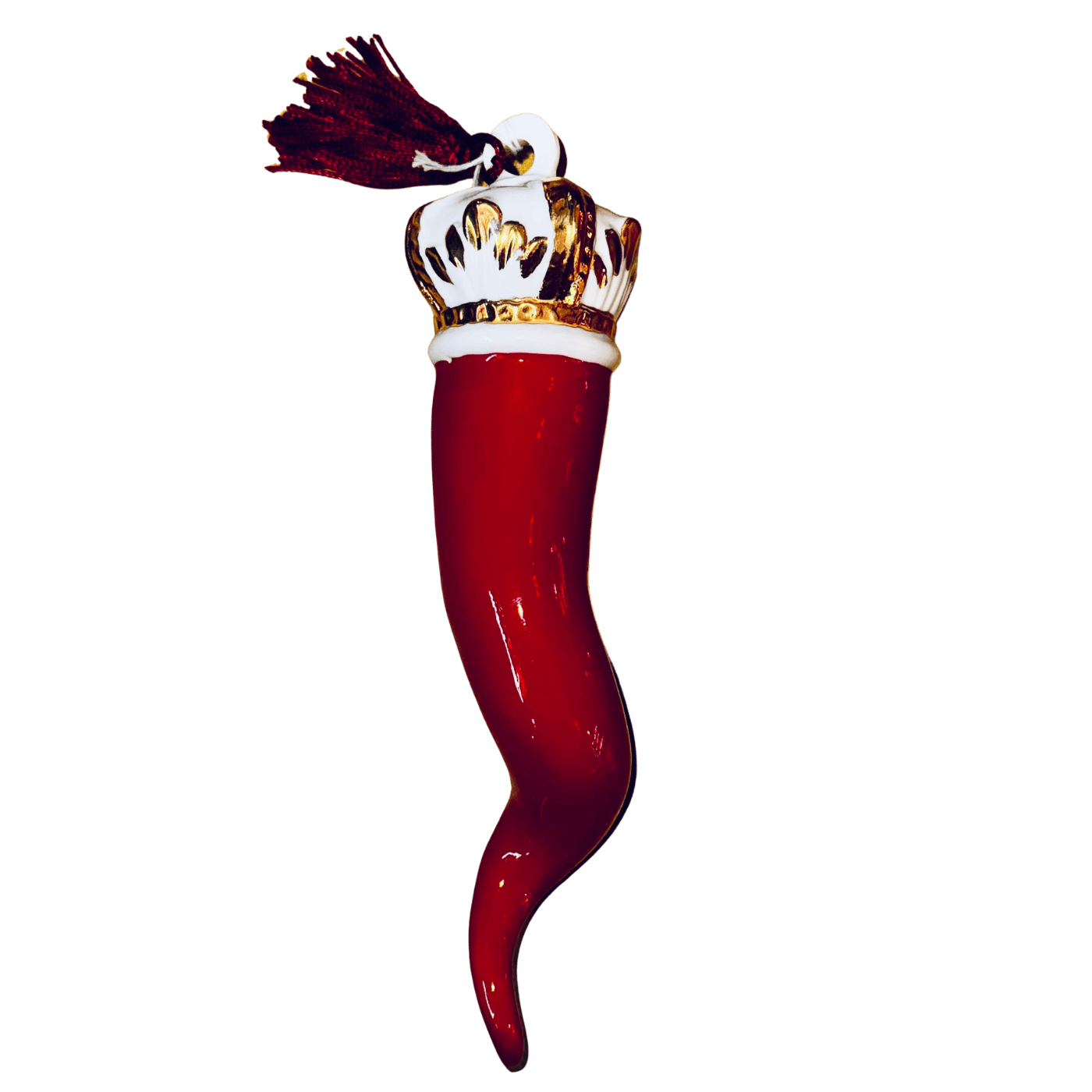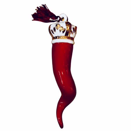 Corno Regale 18 cm Rosso: portafortuna in porcellana Capodimonte, dipinto a mano. Elegante e tradizionale, simbolo di forza e protezione.