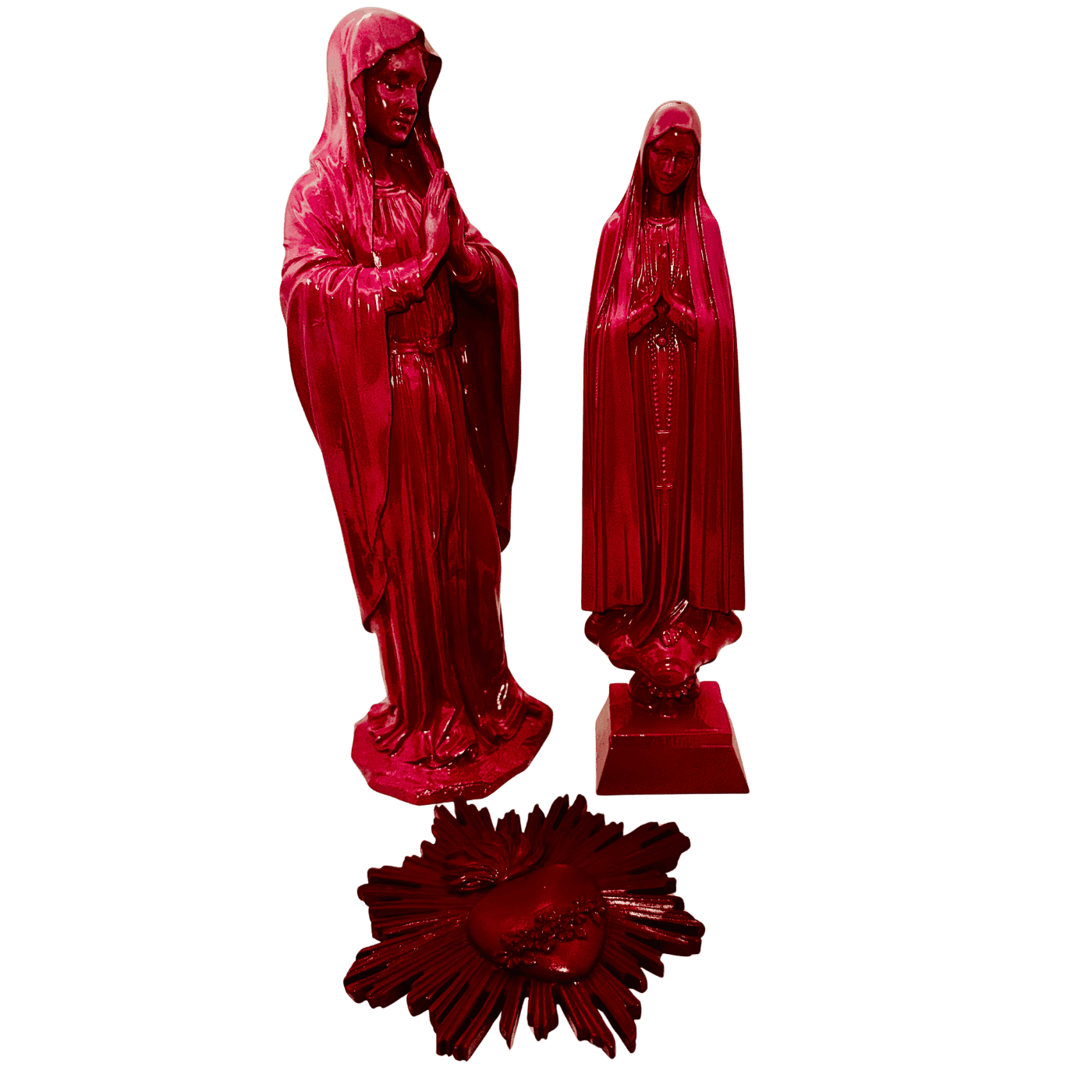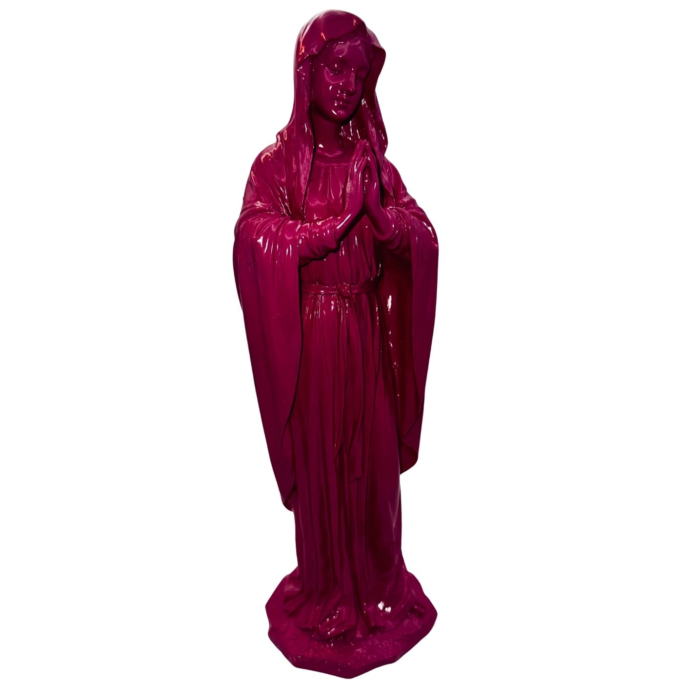 Madonna in preghiera fuxia – Statuetta in resina stile pop. Un mix tra tradizione e arte contemporanea, ideale per spazi moderni con un tocco spirituale.