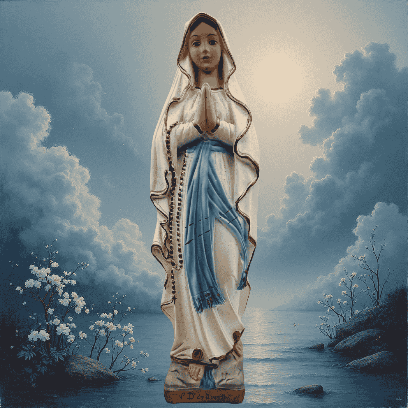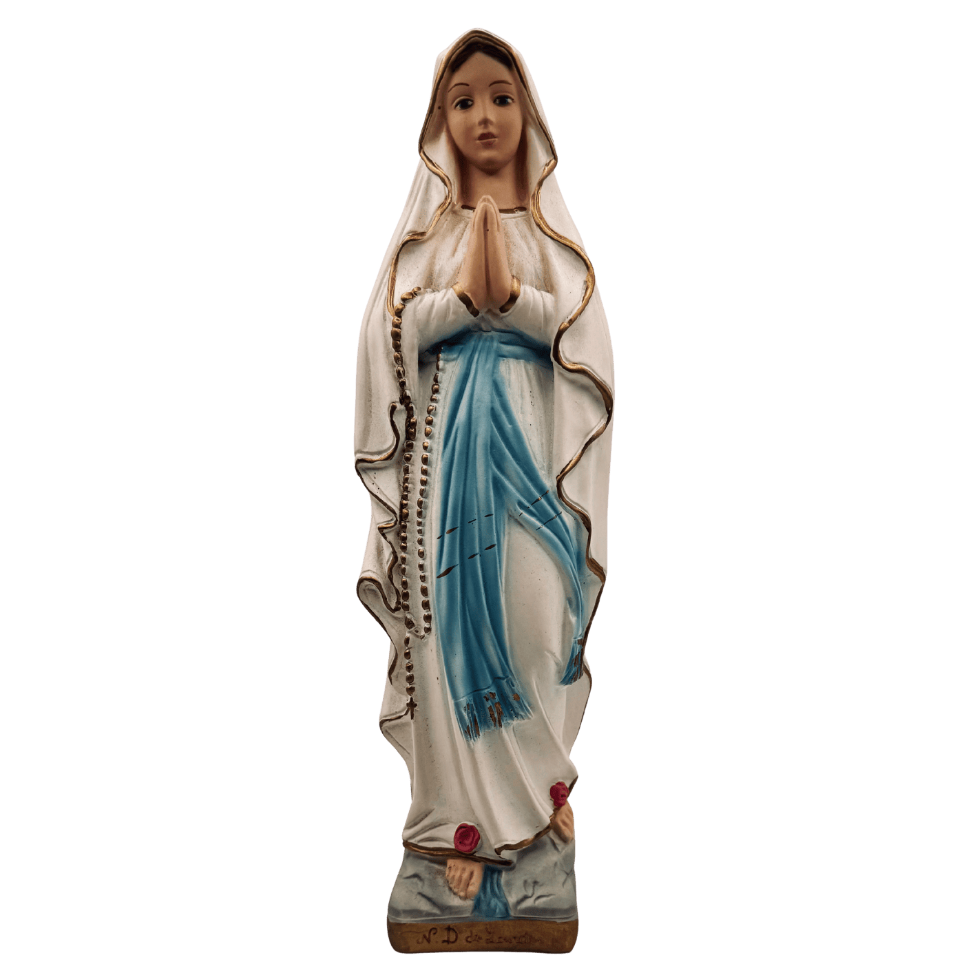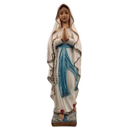 Statuetta Nostra Signora di Lourdes in gesso – alta 30 cm, dipinta a mano. Lavorazione artigianale che trasmette un senso di protezione, fede e serenità.