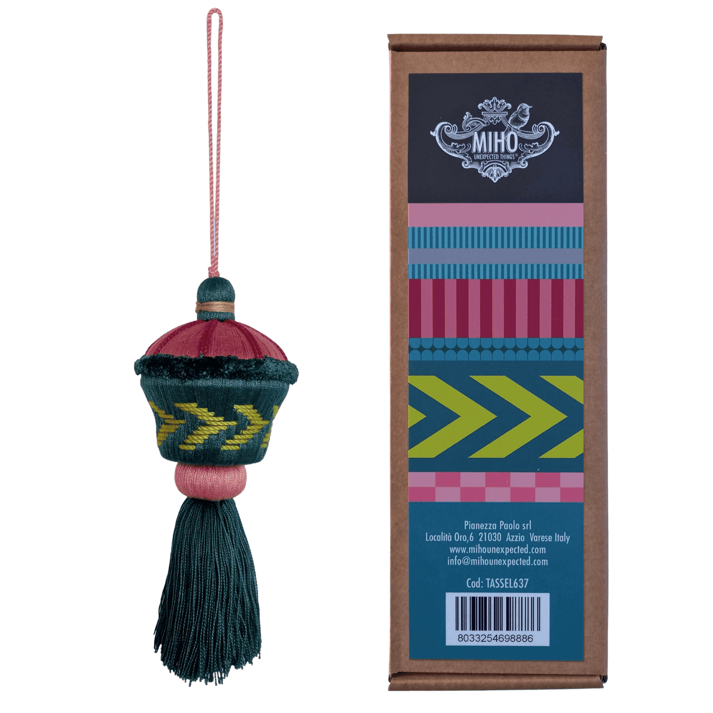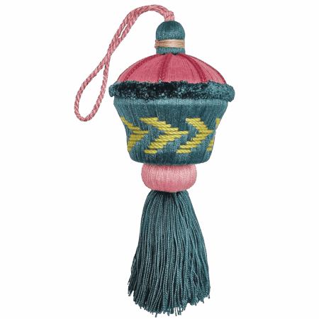 Nappina decorativa in legno e tessuto, finitura rosso elegante. Ideale per impreziosire maniglie, chiavi o tende. Un piccolo dettaglio che dona personalità agli interni.