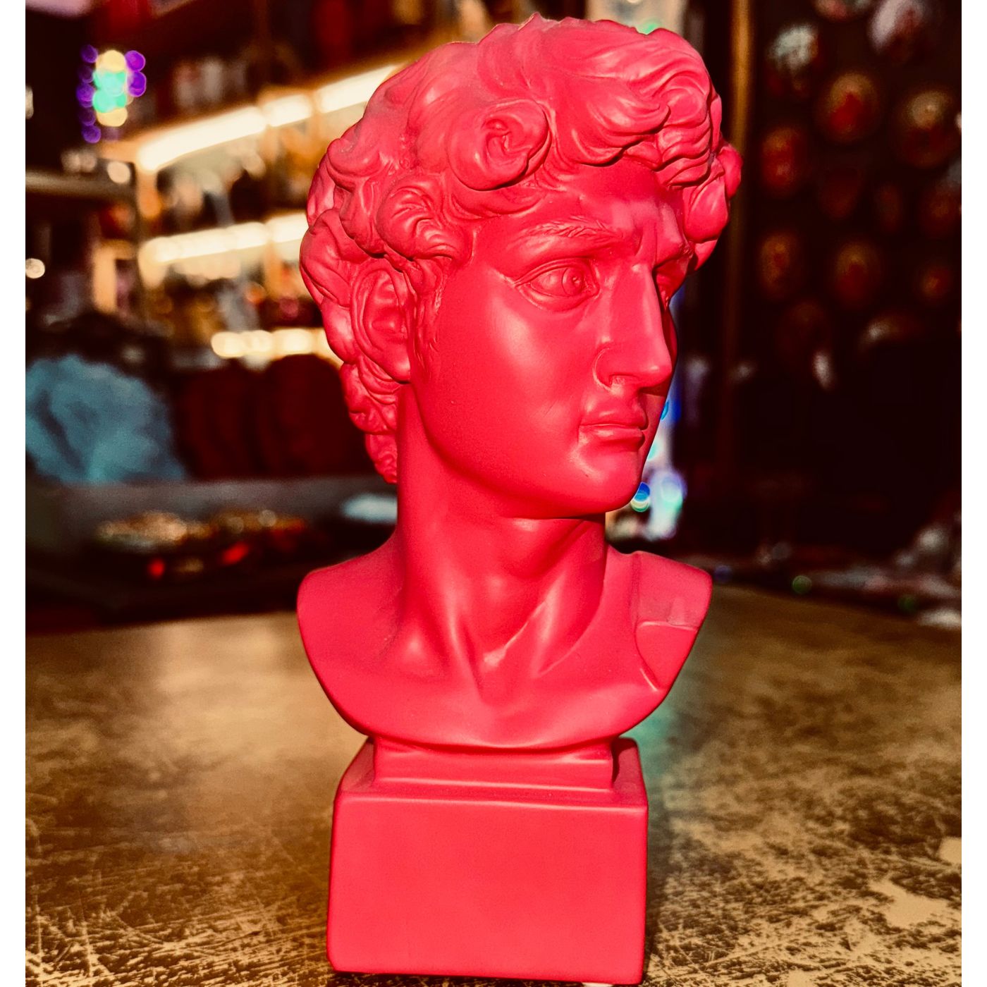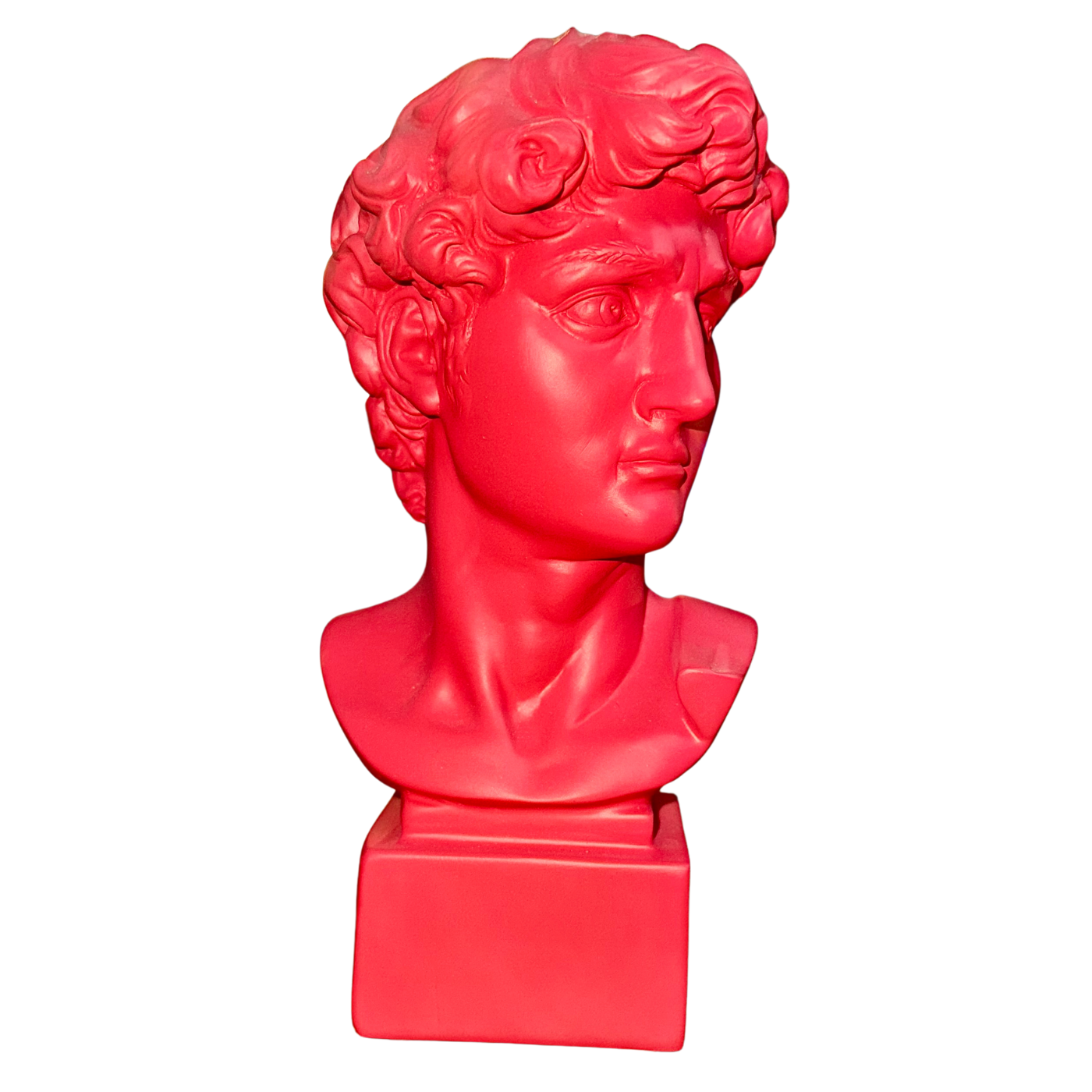 Busto del David in resina rossa, 18 cm. Una versione contemporanea e intensa del celebre soggetto classico. Aggiunge carattere e colore a ogni spazio.