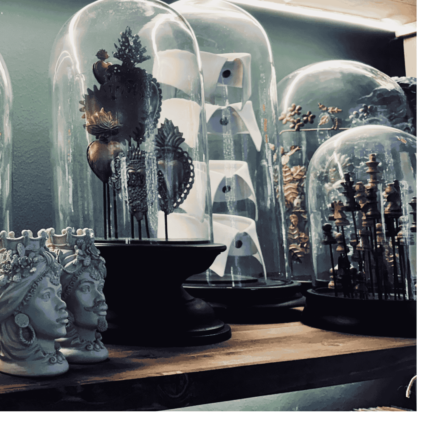 legno do mango, ferro e vetro