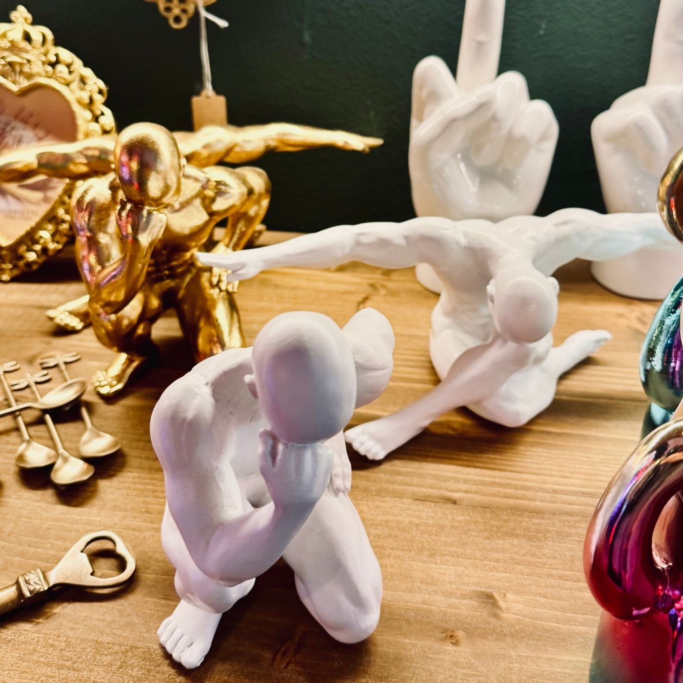 Scultura decorativa in resina dorata raffigurante una ginnasta in movimento. Un oggetto d’arredo raffinato e originale che dona dinamismo e luce a mensole o librerie. Perfetto per chi ama il design elegante con un tocco artistico.