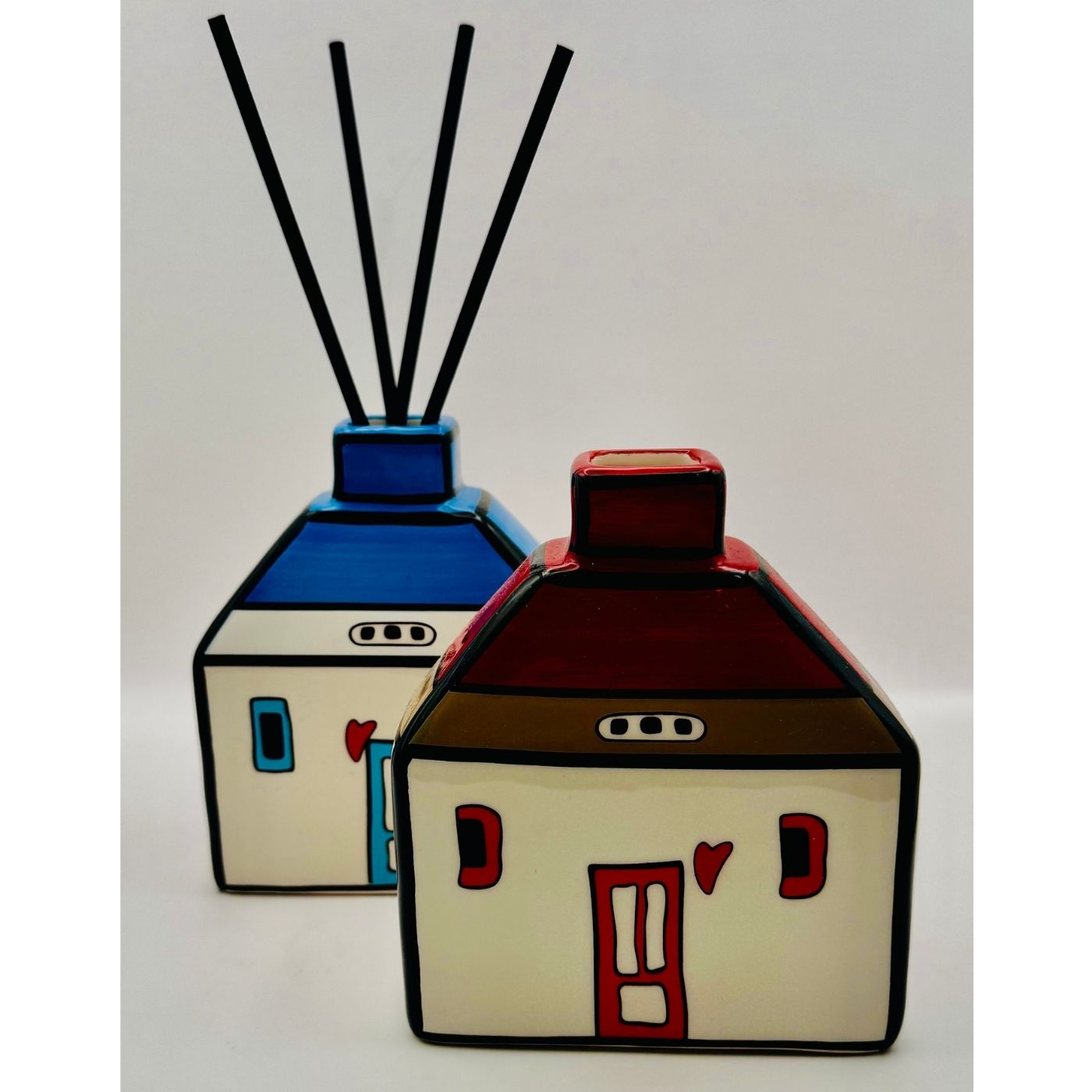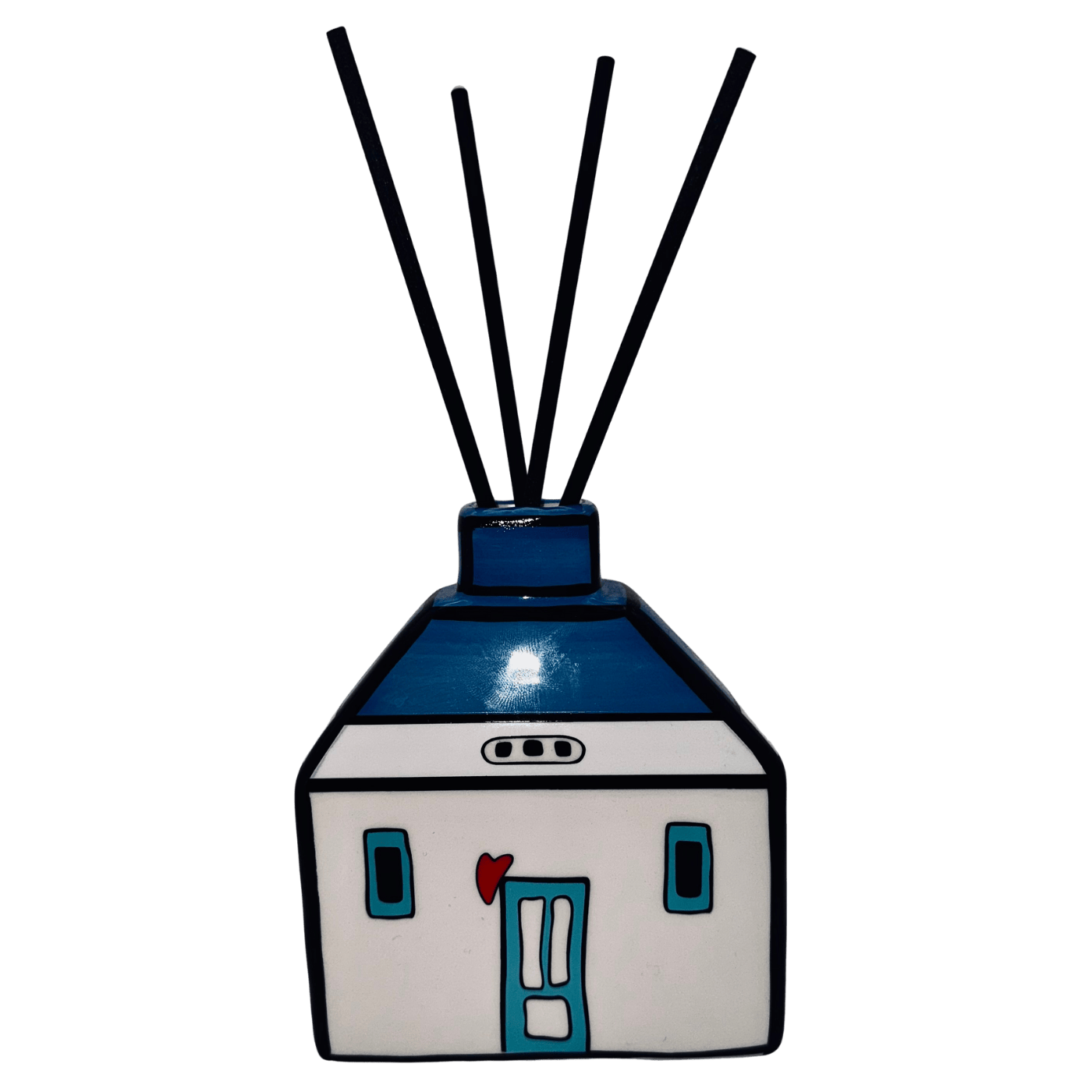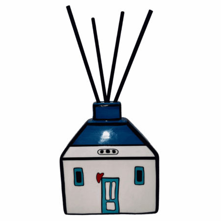 Profumatore “Le Casette” in ceramica blu, accompagnato da quattro bastoncini (fragranza non inclusa). Oggetto d’arredo profumato perfetto per bagno, camera o ingresso. Design dolce e contemporaneo.