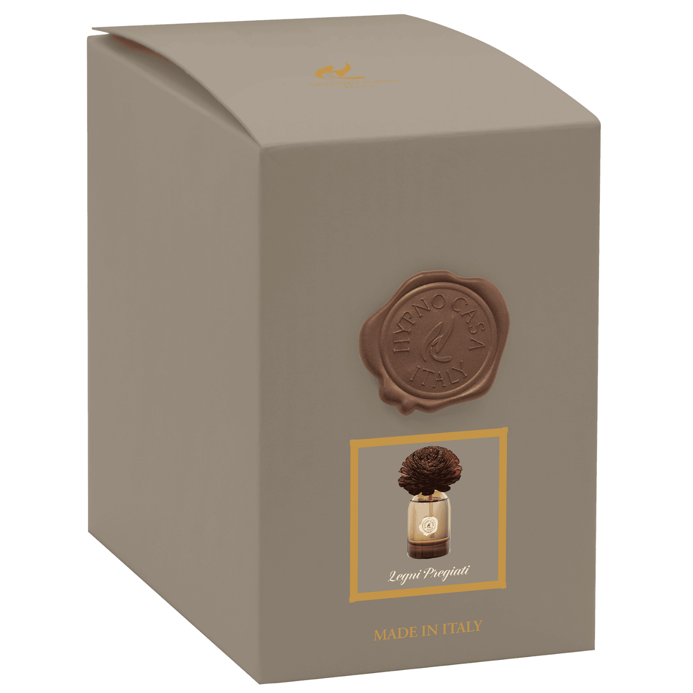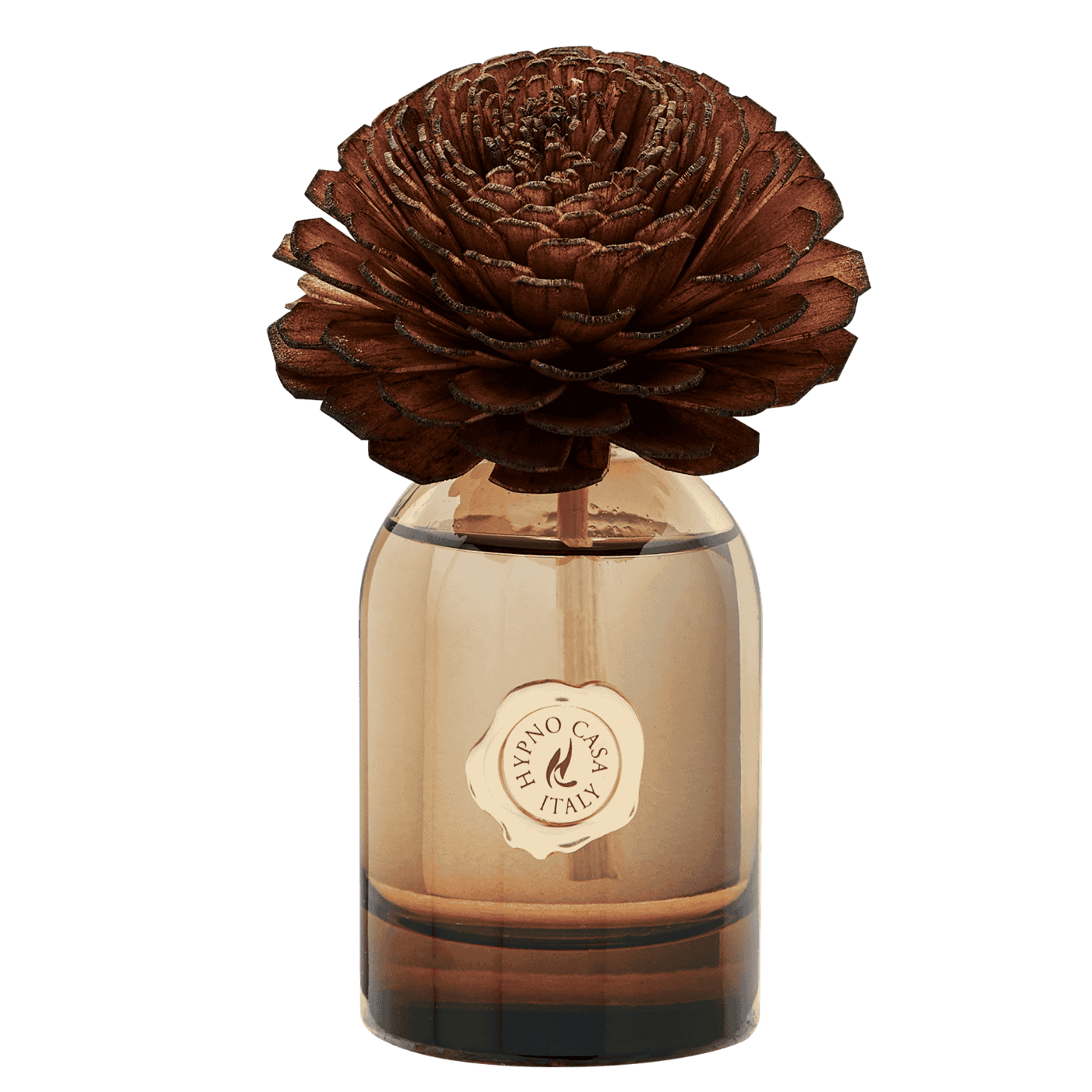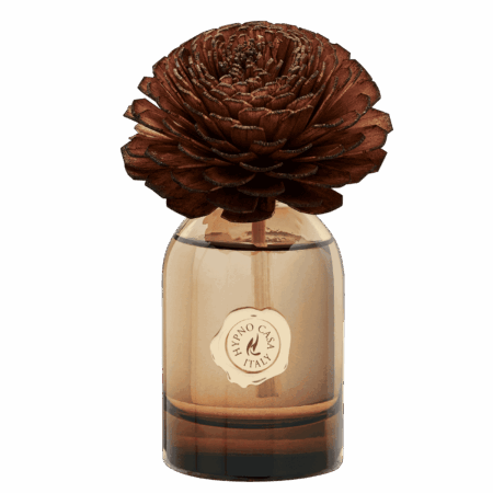 Diffusore con fiore decorativo da 100 ml – Colore marrone. Legni Pregiati è una sinfonia olfattiva calda e cremosa con caramello salato, magnolia, patchouli e lavanda. Per atmosfere eleganti e rilassanti.