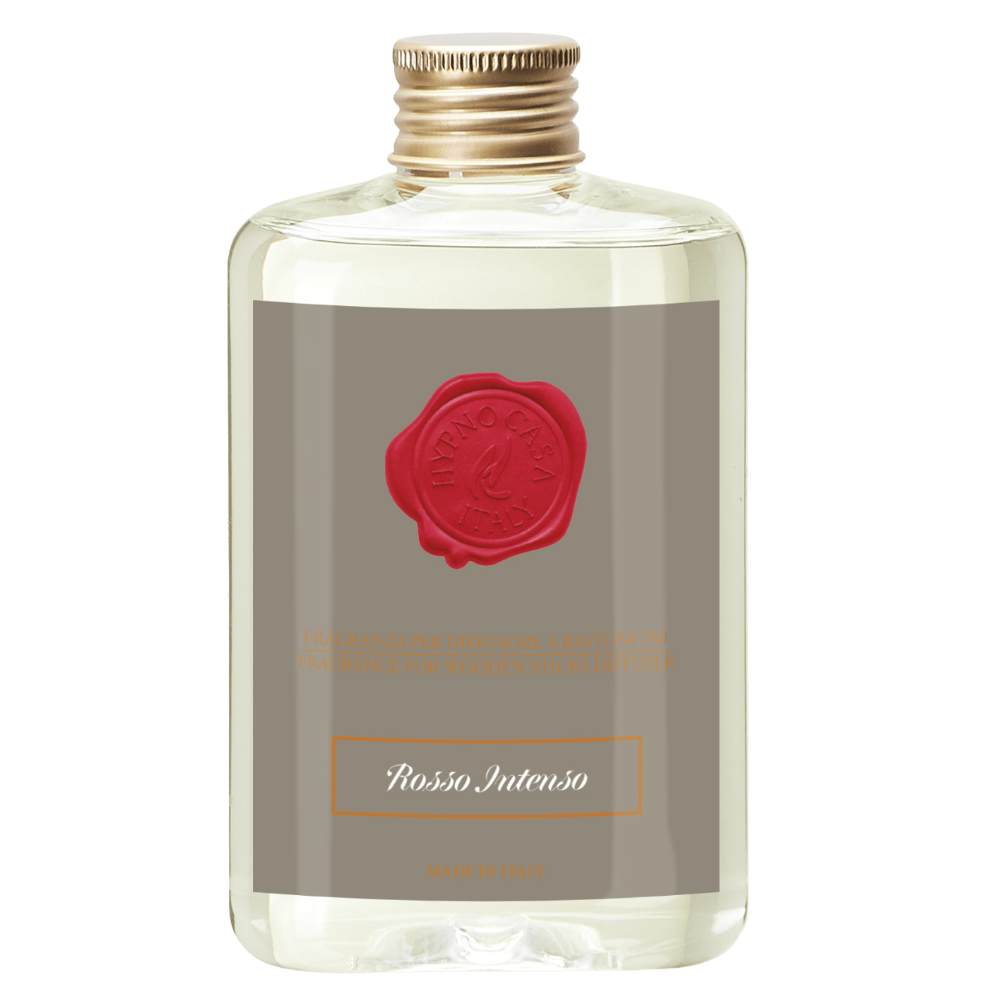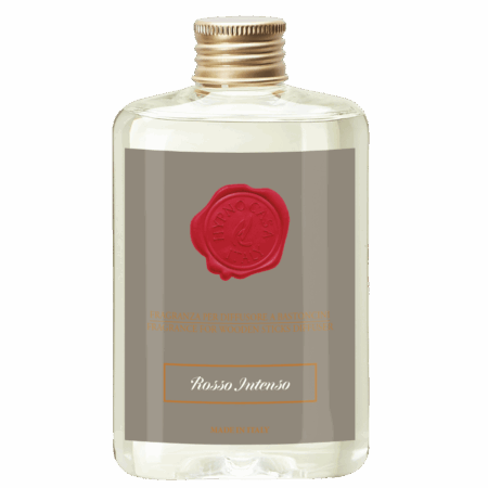 Ricarica da 200 ml per diffusori a bastoncini – Rosso Intenso. Una fragranza passionale ed energica: note fruttate di Fragolina di Bosco, Uva Rossa, Lampone e Mora si fondono a un cuore avvolgente di Cuoio e Incenso, vivacizzato da un tocco di Pepe Nero. Il fondo boisée firma un profumo sensuale e sofisticato.