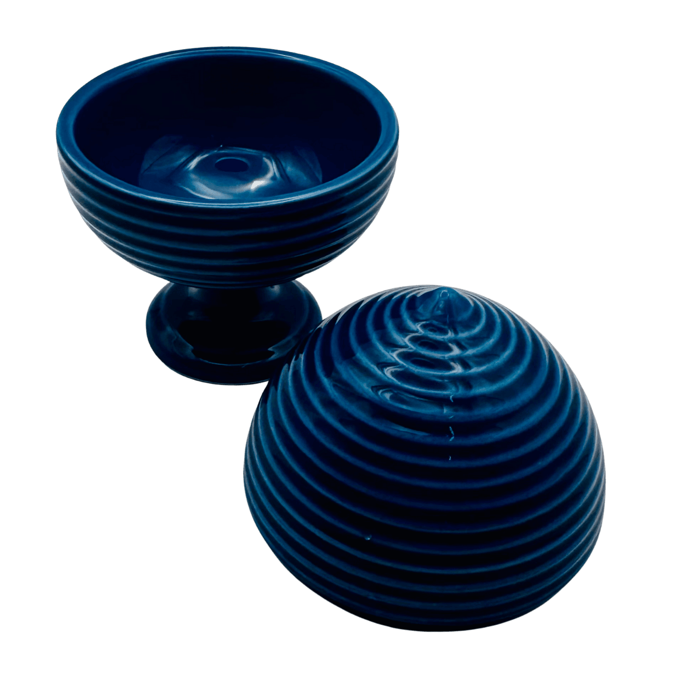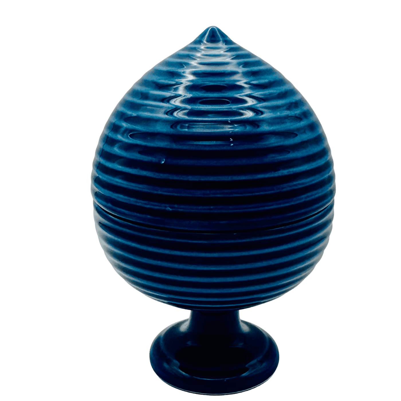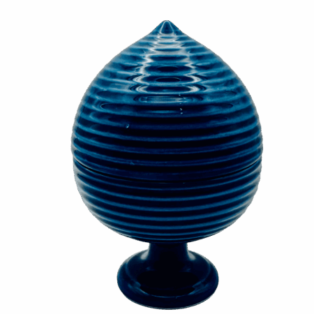 Pumo rigato blu in resina, 12 cm. Dotato di scatola, perfetto come oggetto simbolico decorativo o idea regalo. Apribile, con coperchio.