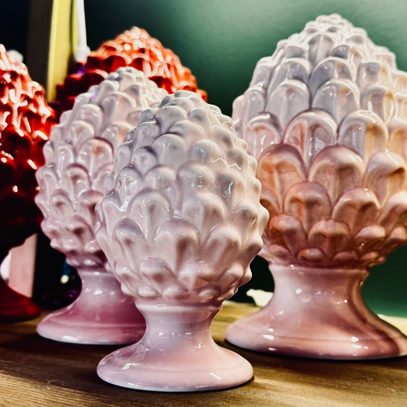 Pigna decorativa rosa cipria alta 14 centimetri in porcellana dipinta a mano. Un oggetto elegante e delicato, perfetto per aggiungere un tocco romantico e raffinato a librerie, consolle o spazi intimi. Ideale anche come idea regalo ricercata.
