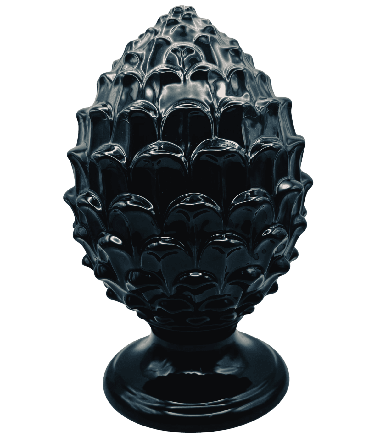 Pigna decorativa blu navy alta 14 centimetri in porcellana dipinta a mano. Un simbolo classico reinterpretato in chiave contemporanea e raffinata, ideale per decorare ambienti moderni ed eleganti con un tocco artistico.