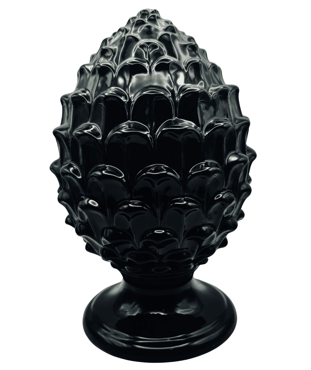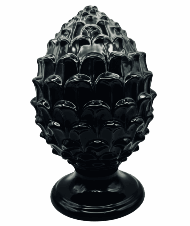 Pigna decorativa nera alta 27 centimetri in porcellana dipinta a mano. Oggetto d’arredo dallo stile deciso e contemporaneo, perfetto per ambienti moderni e minimal. Dona carattere e raffinatezza a ogni angolo della casa.