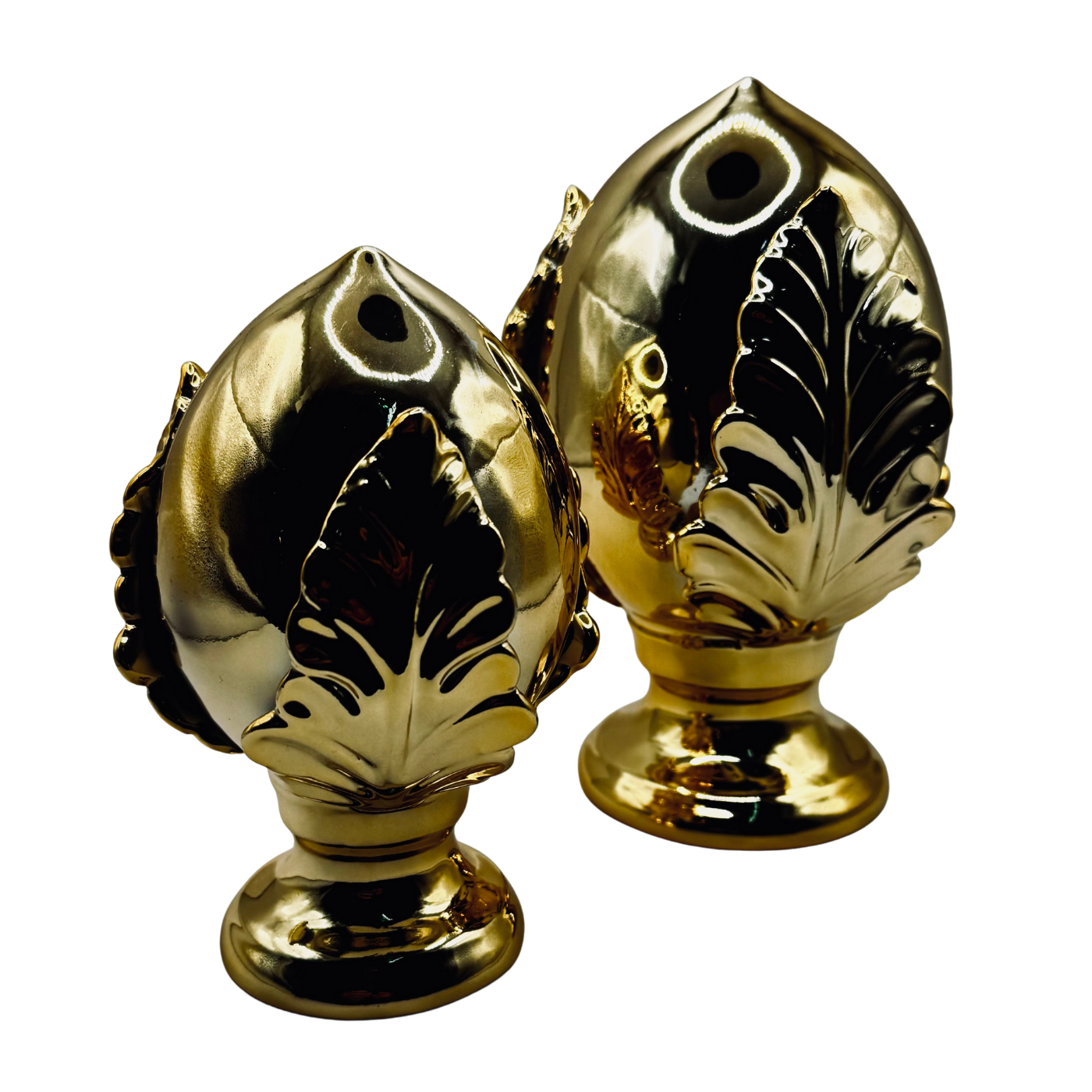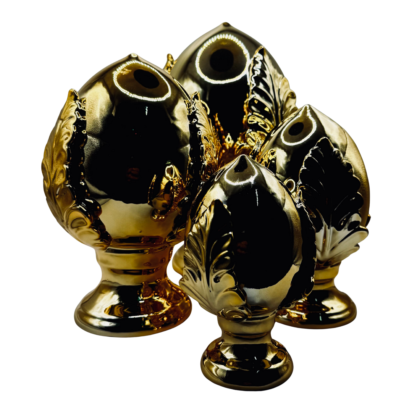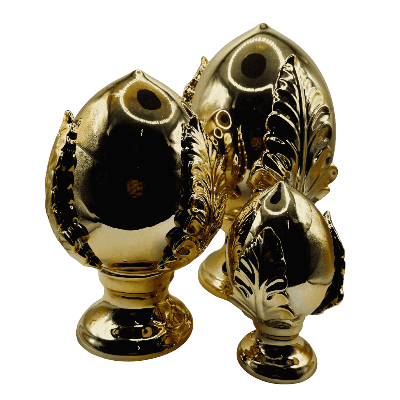 Pumo decorativo oro alto 14 centimetri in porcellana dipinta a mano. Simbolo portafortuna pugliese reinterpretato con lusso e modernità. Oggetto raffinato che illumina mensole e tavolini, perfetto anche come dono di buon auspicio.