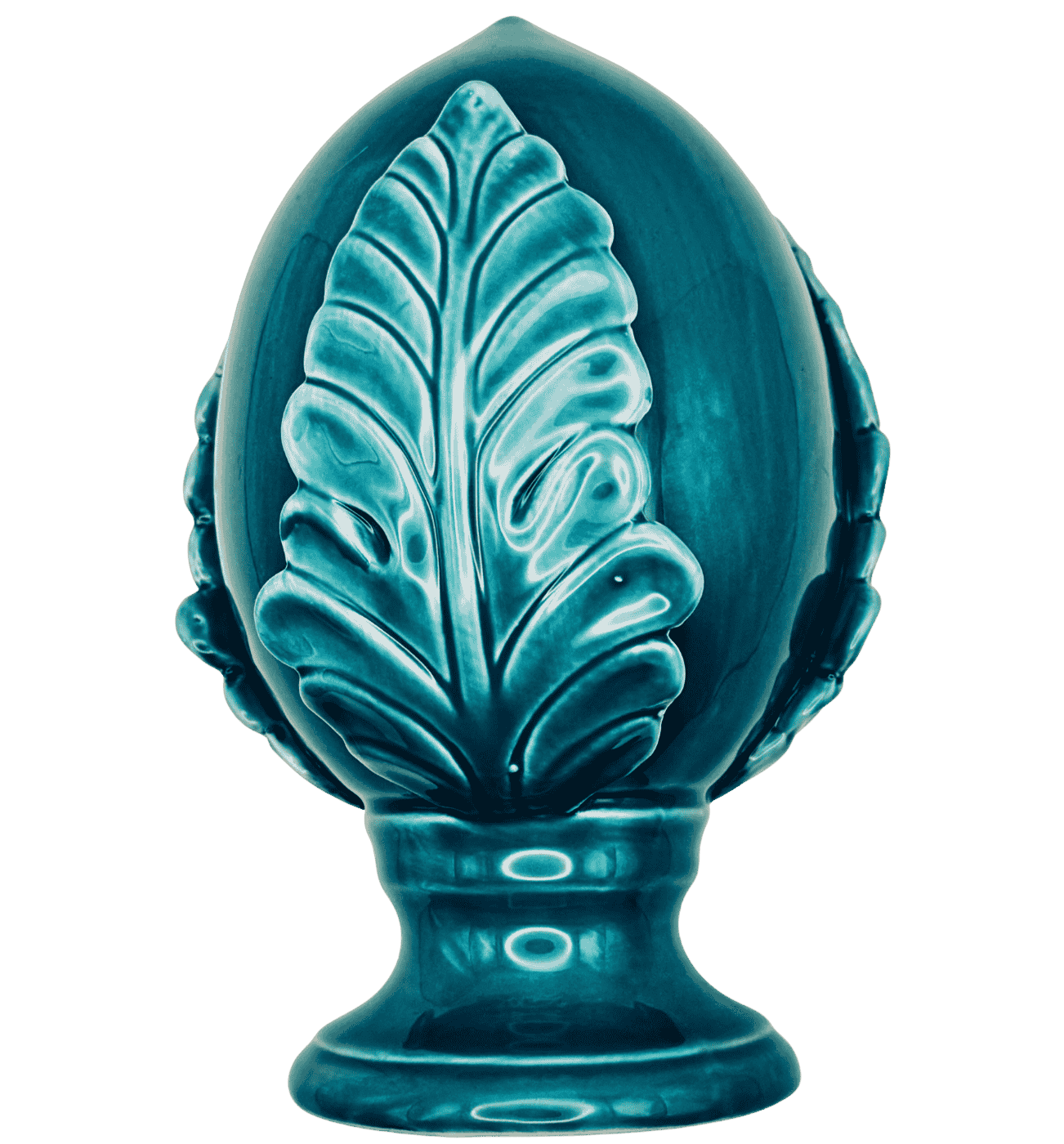 Pumo decorativo turchese alto 18 centimetri in porcellana dipinta a mano. Con il suo colore vibrante ed elegante design artigianale, dona freschezza e originalità agli ambienti della casa. Perfetto come elemento decorativo di spicco.