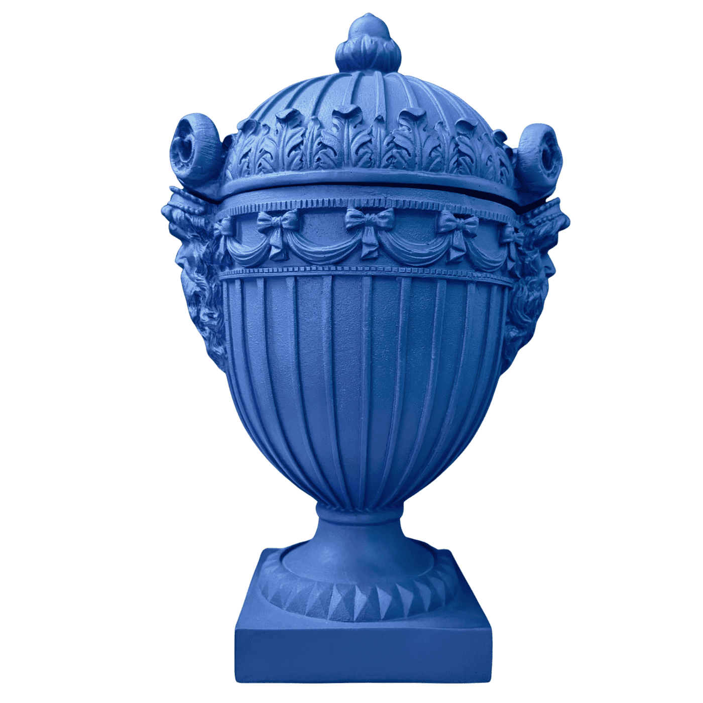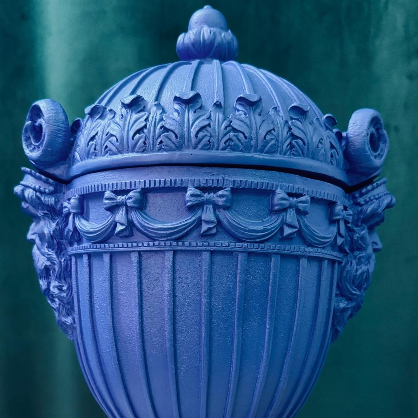 Potiche blu in resina, con linee morbide e colori pieni. Stile neo pop, ideale come oggetto decorativo da appoggio. Perfetta per ambienti contemporanei o tavole creative.