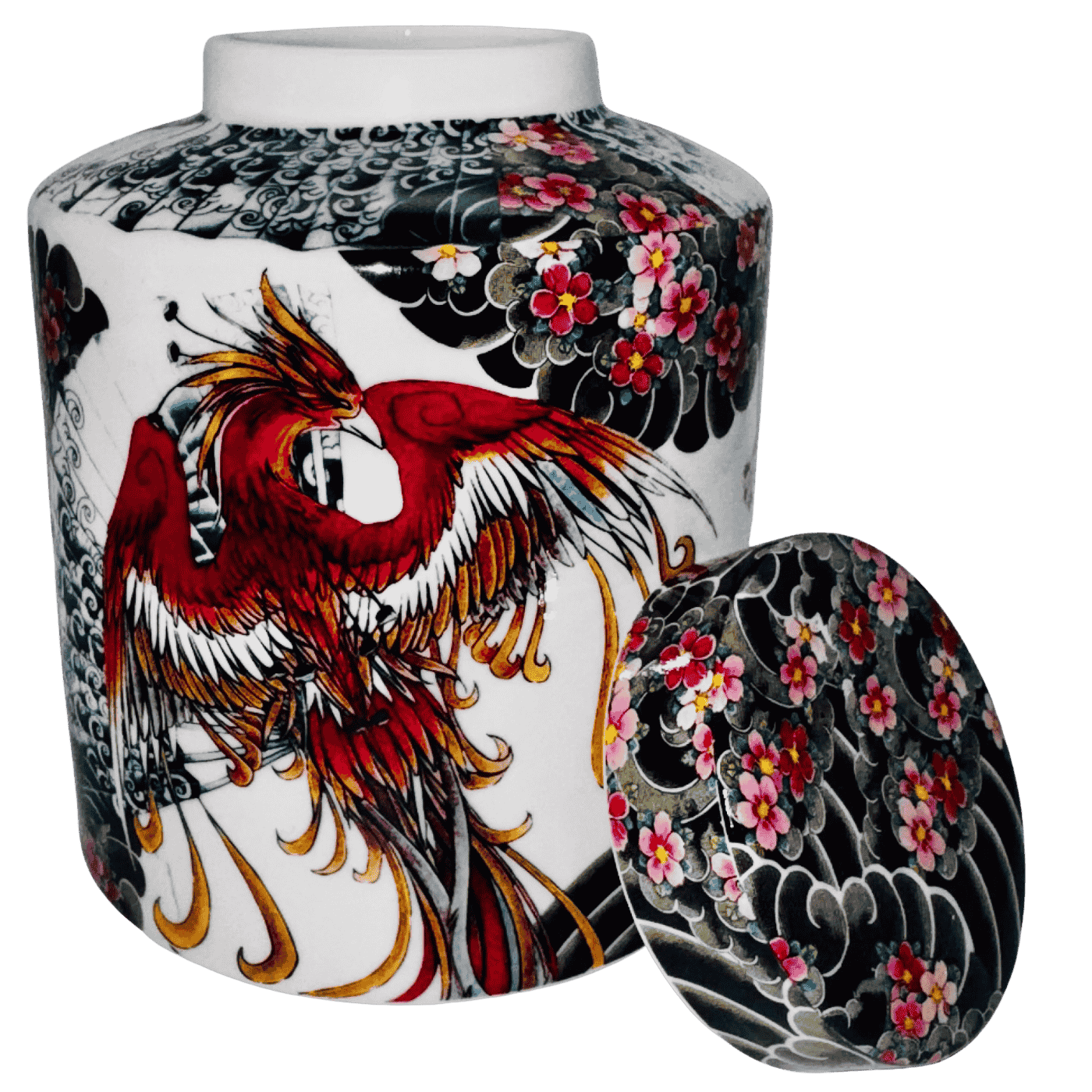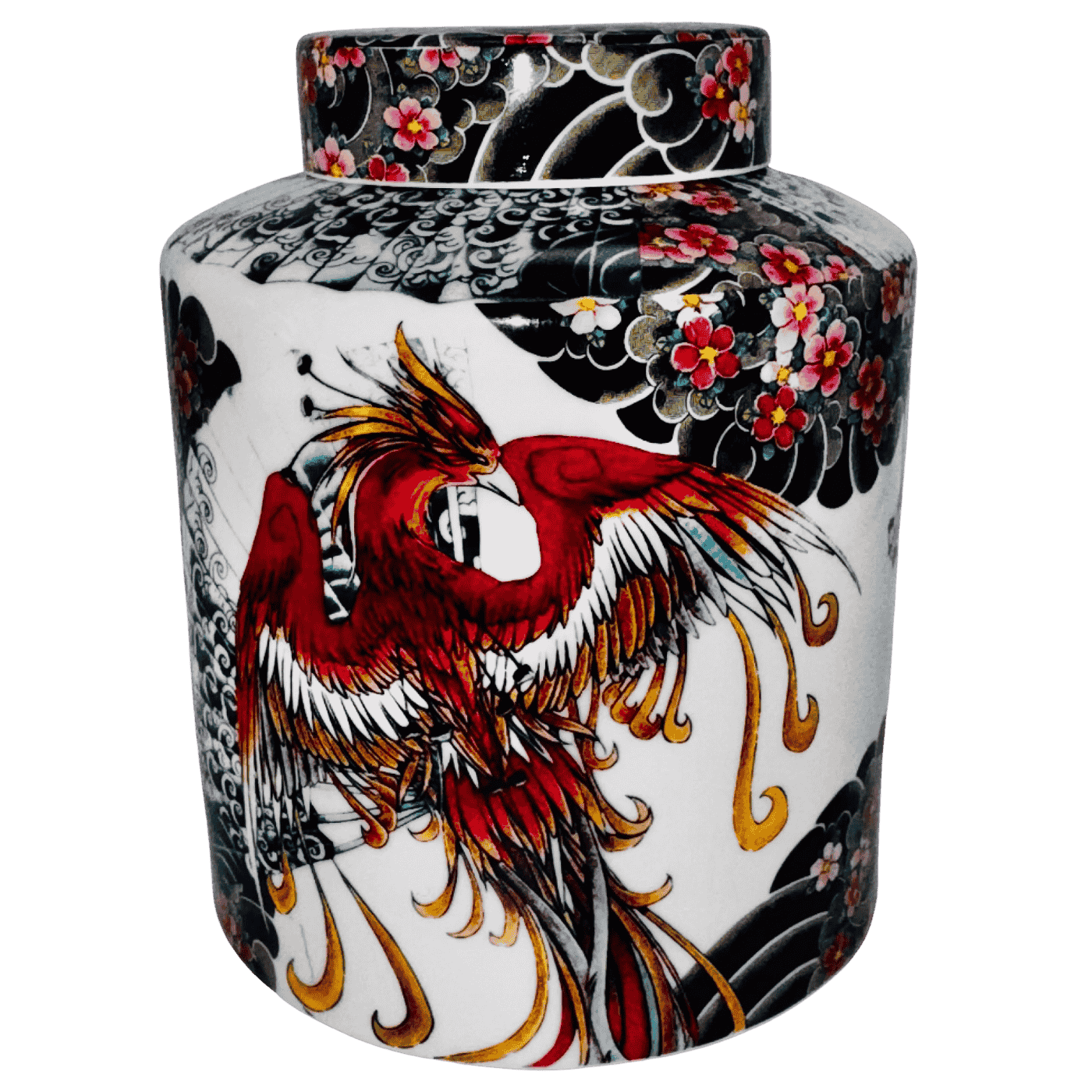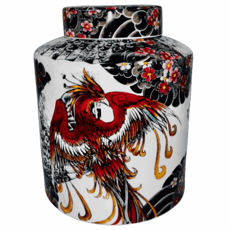 Diffusore Cilindrico “Tattoo Age” – Porcellana con Disegno Fenice (H 13 cm – Ø 13 cm)