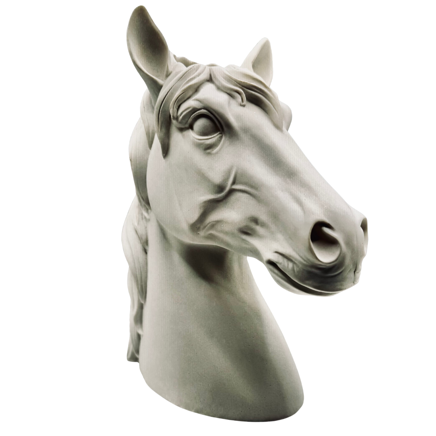 Un vaso-scultura che incarna potenza e grazia: testa di cavallo in resina bianca, ideale per dare carattere a mensole o credenze. Perfetto anche come regalo per amanti degli animali e del design artigianale.