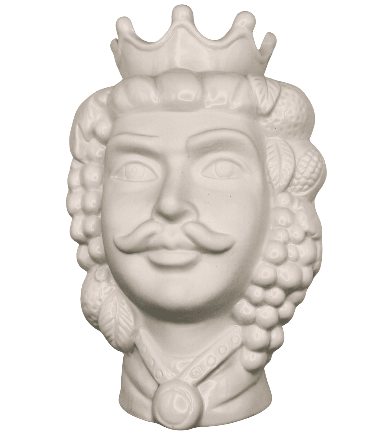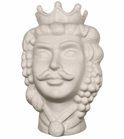 Vaso testa di re arabo bianco, finitura lucida e opaca. Ideale per chi ama oggetti etnici reinterpretati in chiave moderna. Un pezzo d’arredo simbolico, di grande stile e forza estetica.