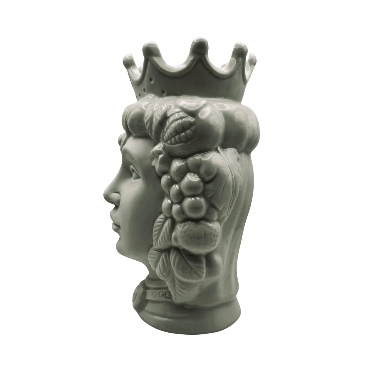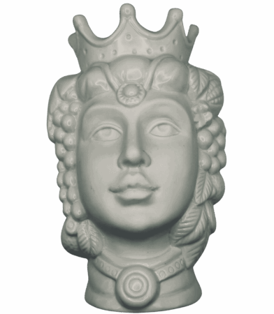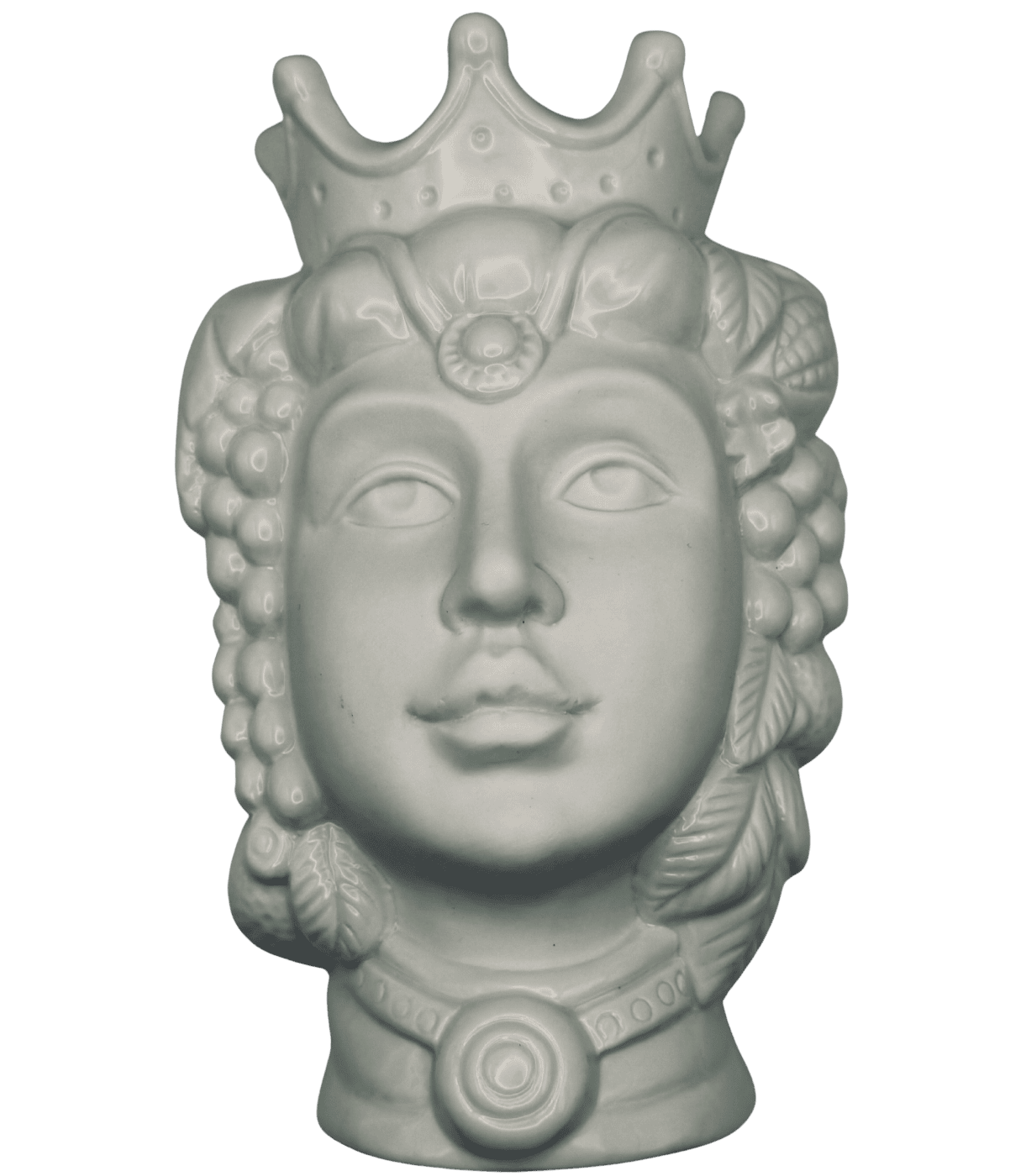 Vaso testa di regina araba bianca, finitura lucida e opaca. Un oggetto simbolico e raffinato che valorizza l’ambiente con il suo design elegante e la sua presenza scultorea. Altezza 22 cm.