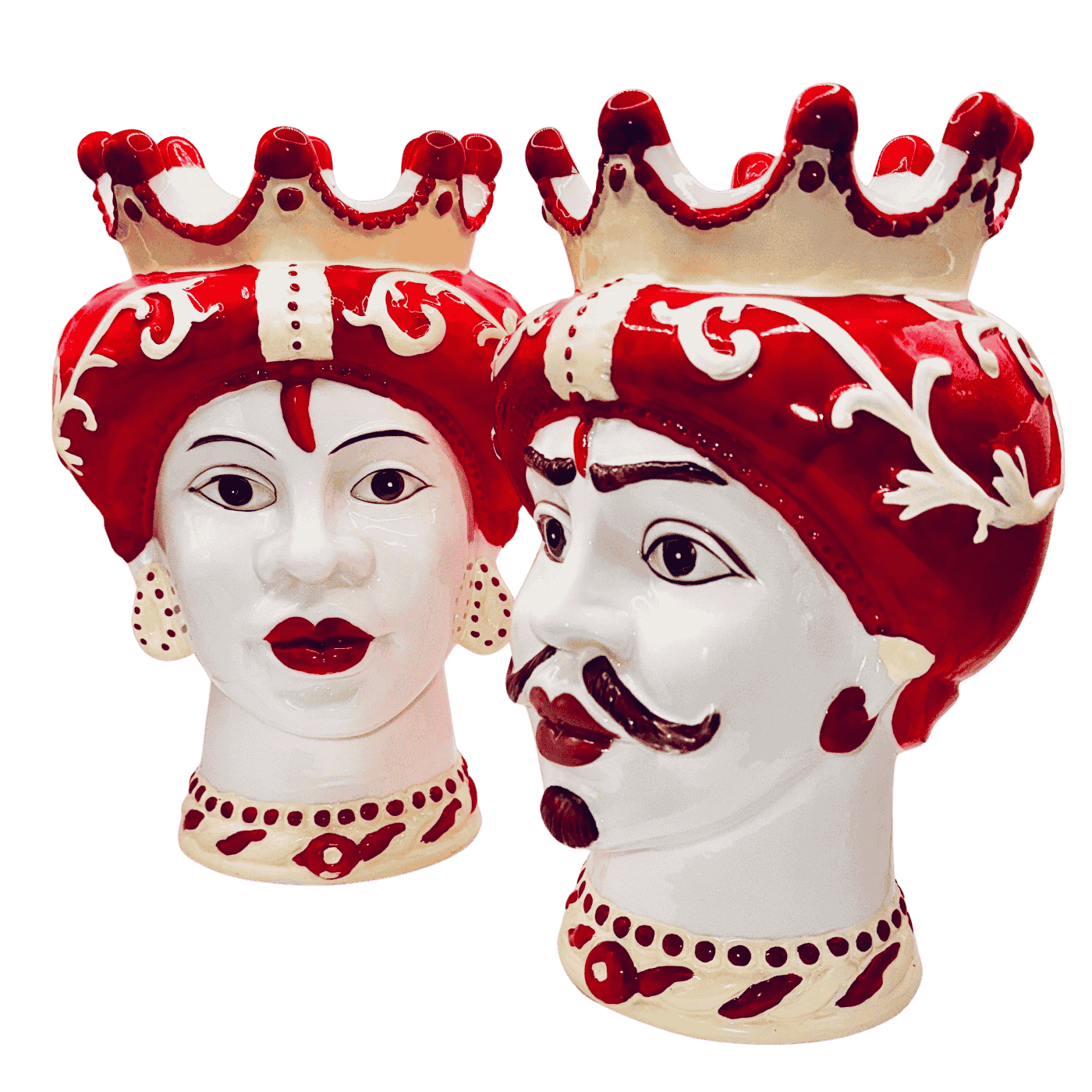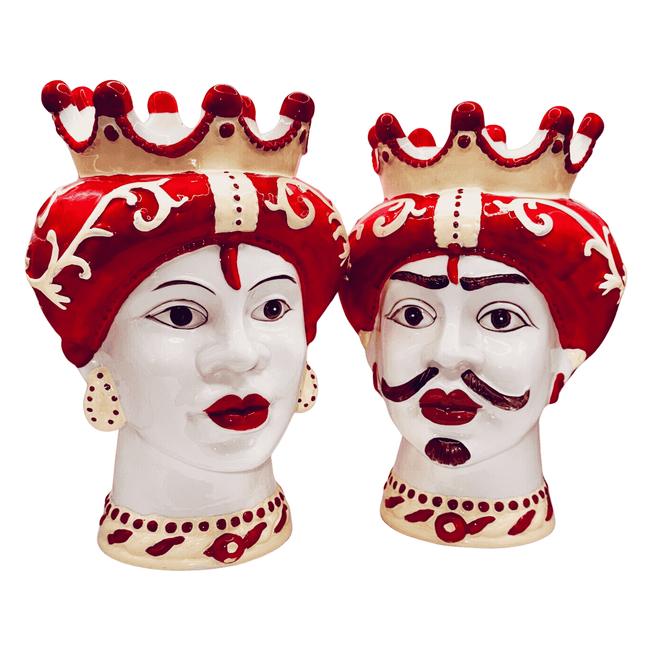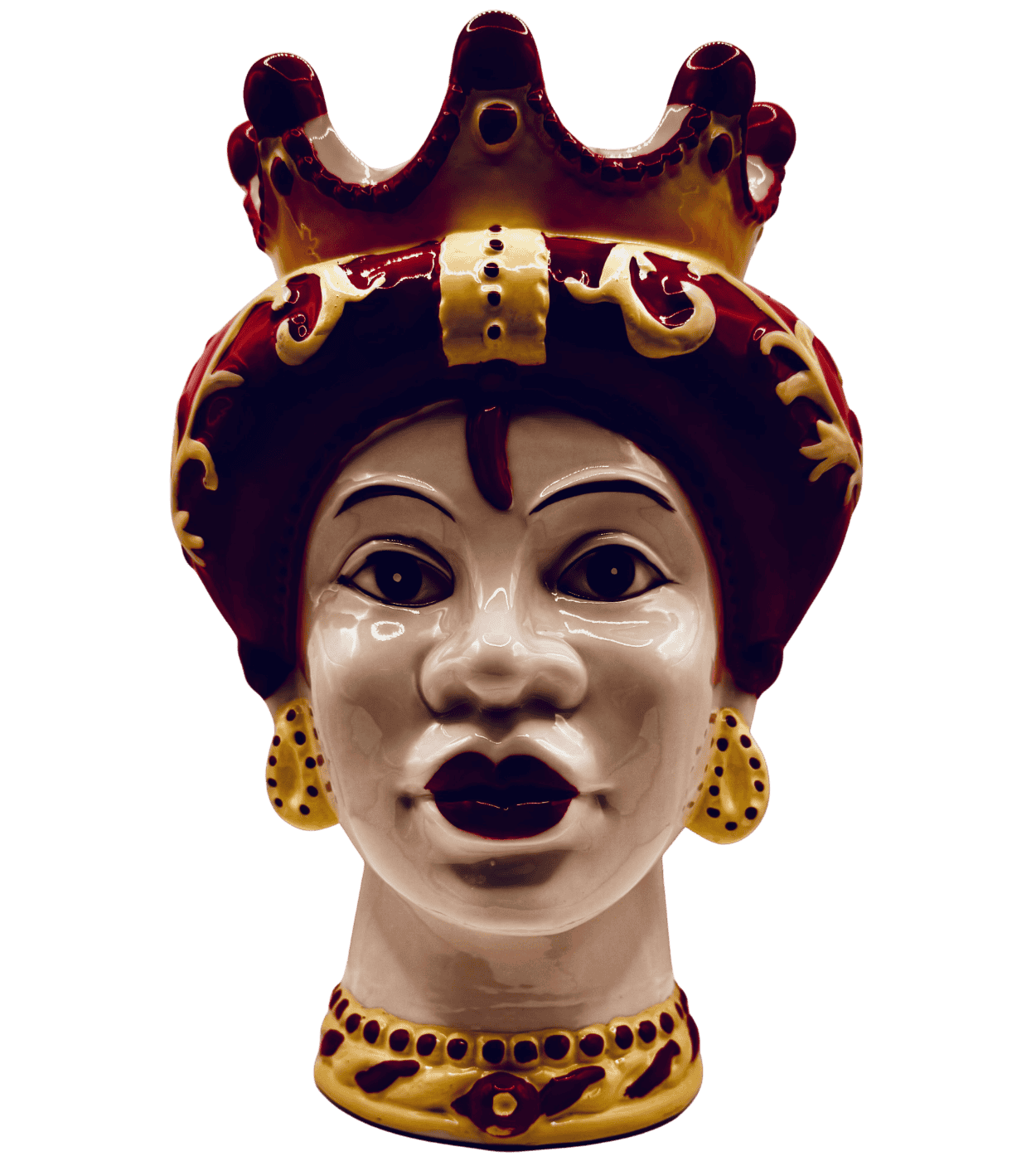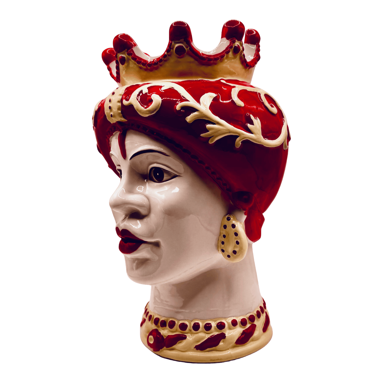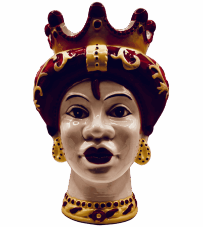 Vaso testa di regina araba con corona rossa