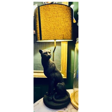 Lampada nera Bagheera in resina, con design moderno e fiero. Perfetta per interni bold e minimali, è un pezzo d’arredo deciso e stiloso, pensato per chi ama oggetti fuori dagli schemi.