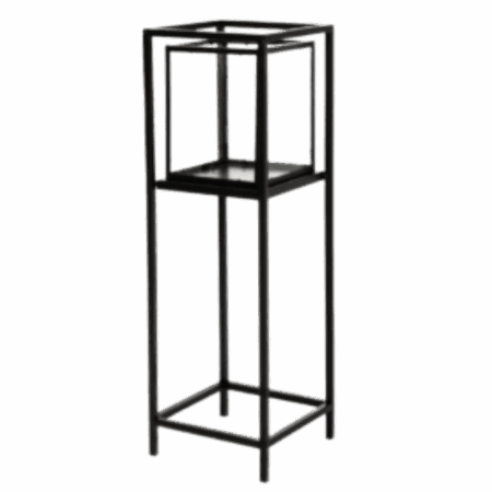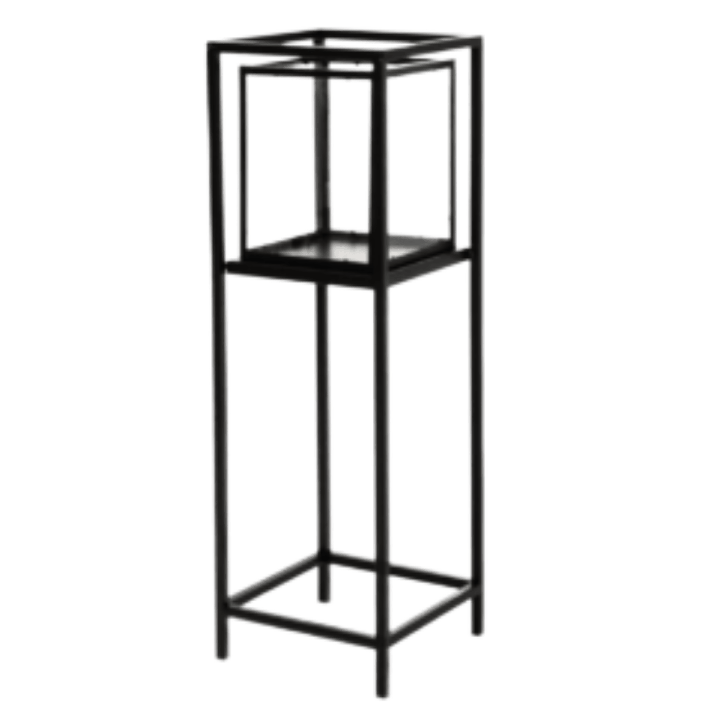 Lanterna moderna in metallo nero e vetro, dal design minimal e geometrico. Pensata per ospitare candele o piccoli vasi, si integra con eleganza in ambienti dallo stile contemporaneo. Ottima anche come centrotavola originale.
