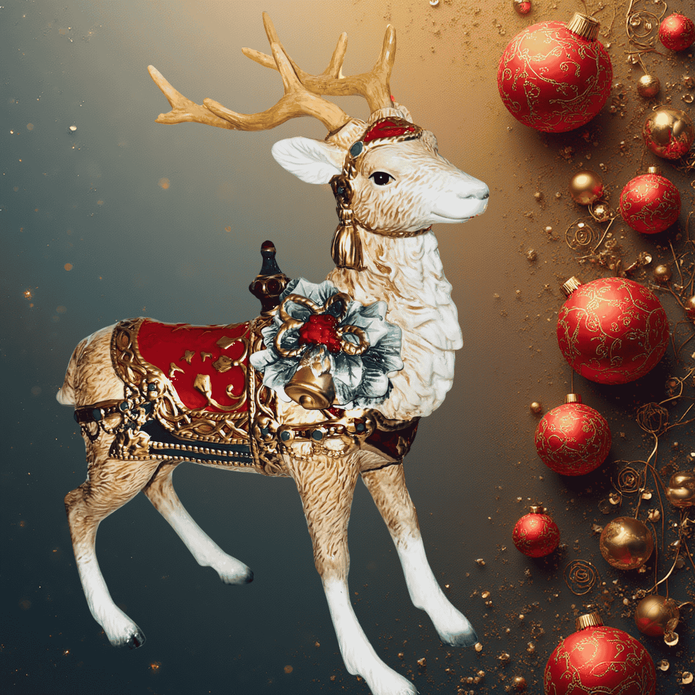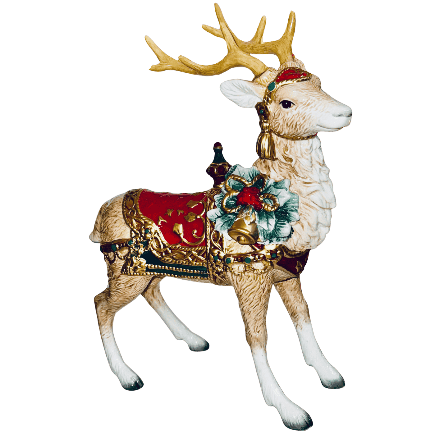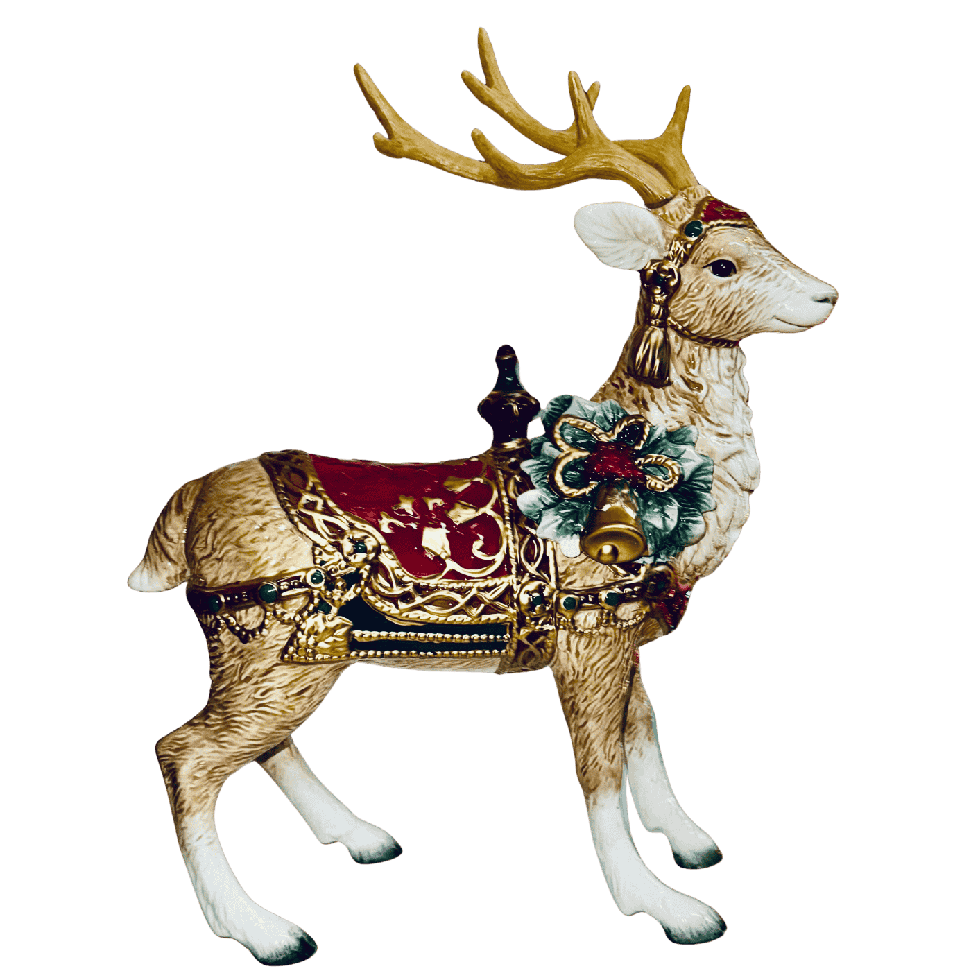 Renna Fitz & Floyd – Porcellana, 35×48 cm con Ghirlanda e Campana