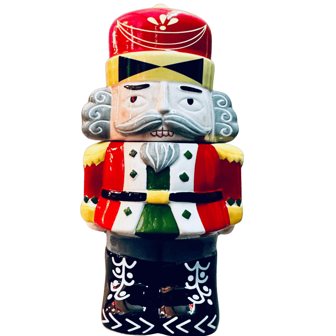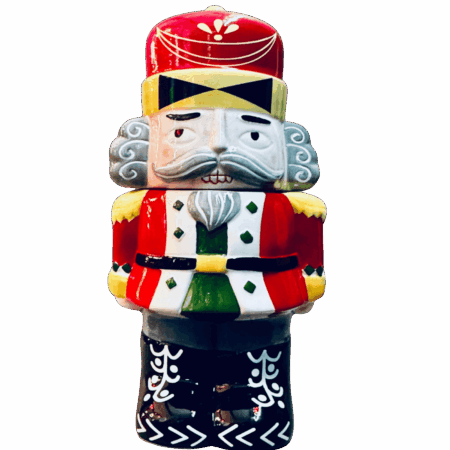 Un elegante barattolo decorativo in ceramica ispirato al classico Schiaccianoci natalizio.