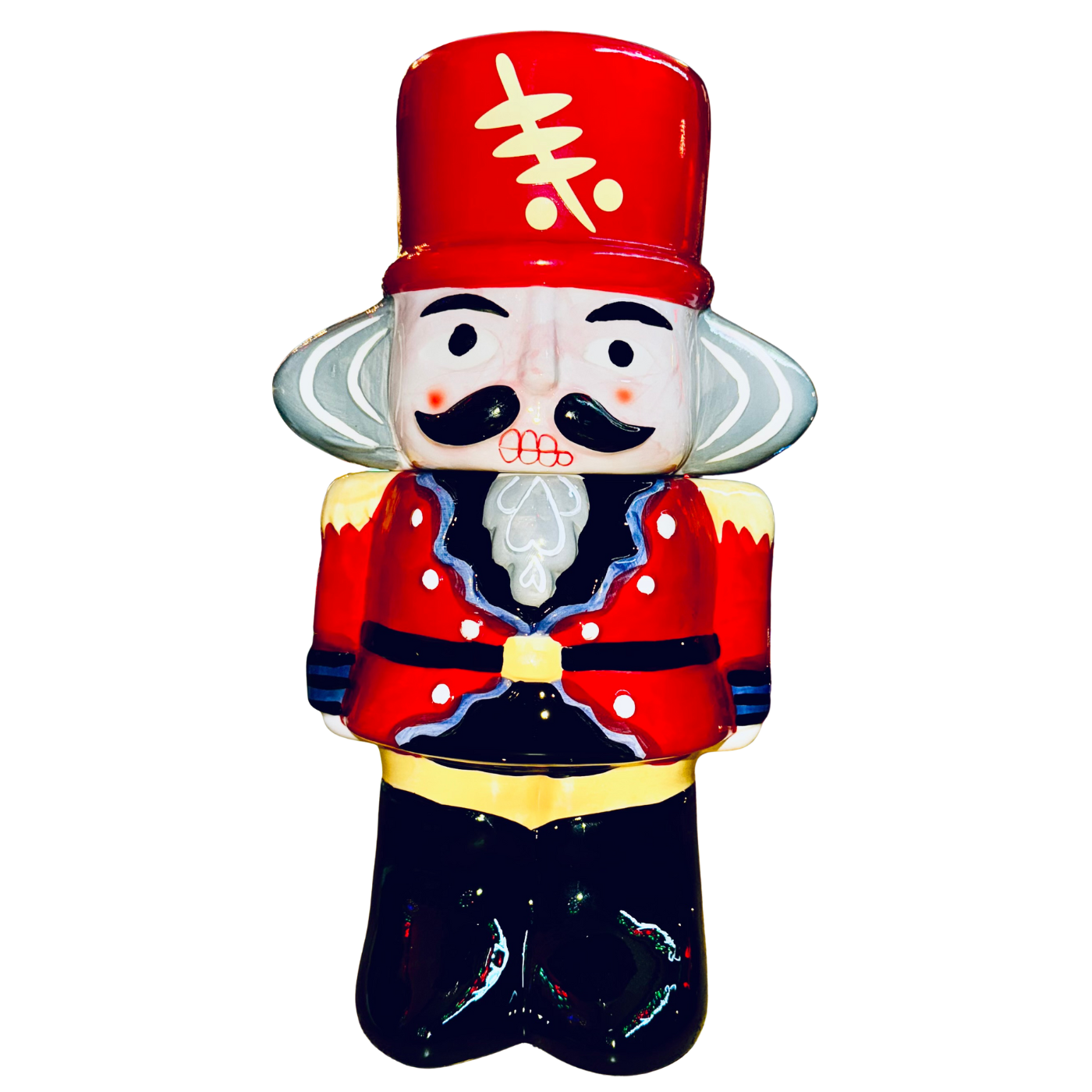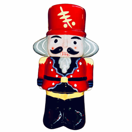 Un elegante barattolo in ceramica ispirato al celebre Schiaccianoci natalizio, reinterpretato in chiave decorativa e funzionale.
