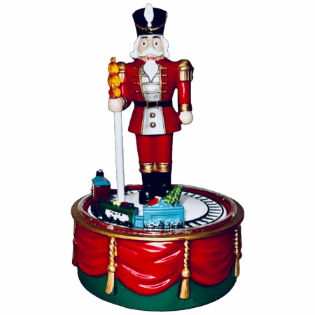 Un incantevole carillon natalizio che combina la maestosità dello schiaccianoci con la dolcezza di un trenino in movimento, simbolo di gioia e magia per grandi e piccini. Realizzato in resina di alta qualità e curato nei minimi dettagli, questo pezzo è perfetto per donare un tocco fiabesco alle tue decorazioni natalizie.