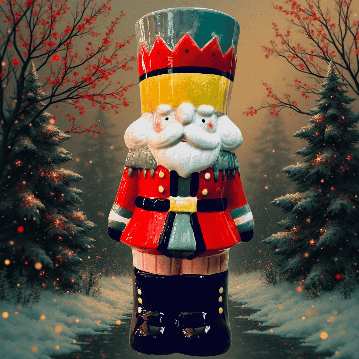 Un’elegante rivisitazione del classico Schiaccianoci natalizio, realizzata interamente in ceramica smaltata e curata nei minimi dettagli.