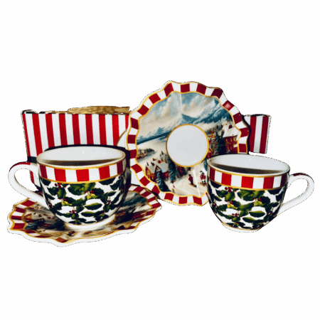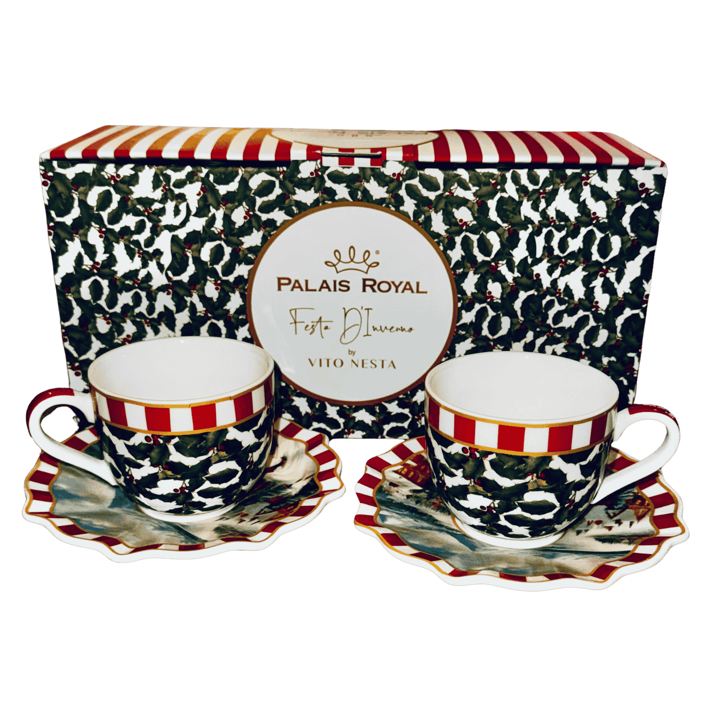 Set da 2 Tazzine con Sottotazza – Disegno Natalizio Agrifoglio Design by Vito Nesta